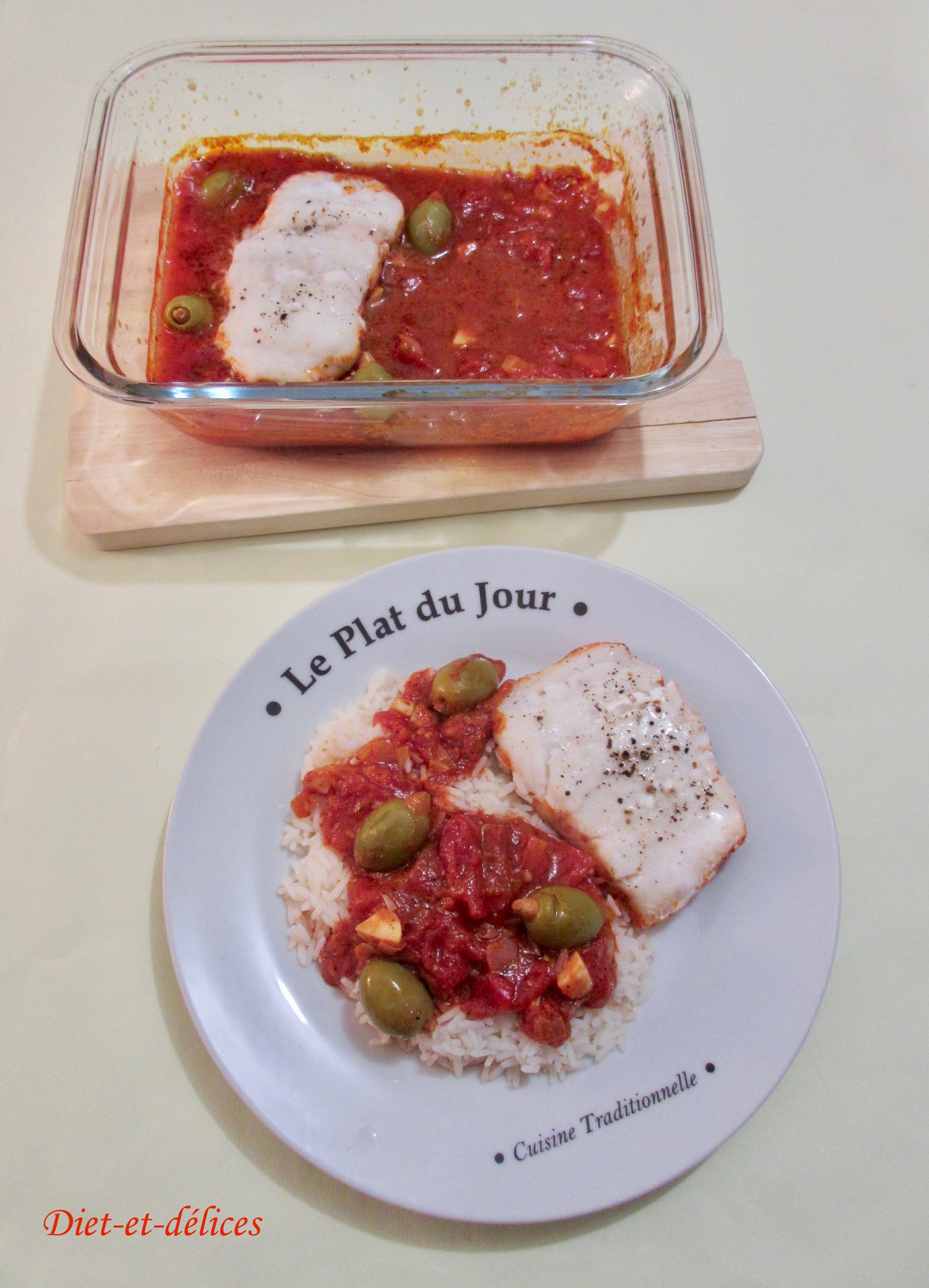 - dos de cabillaud à la tapenade sur son lit de pulpe de tomates