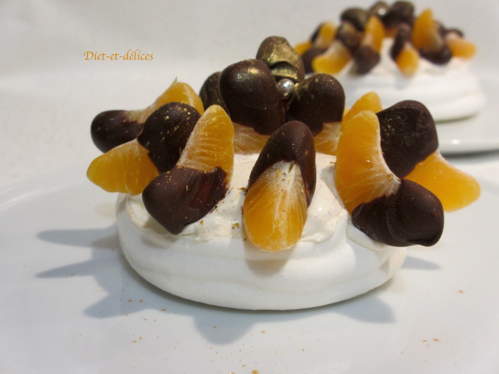 pavlovaclémentineschocolat , pavlova aux clémentinesclémentines au chocolatcannellechantillychantilly à la cannellemeringue,  blanc d’oeufdessert