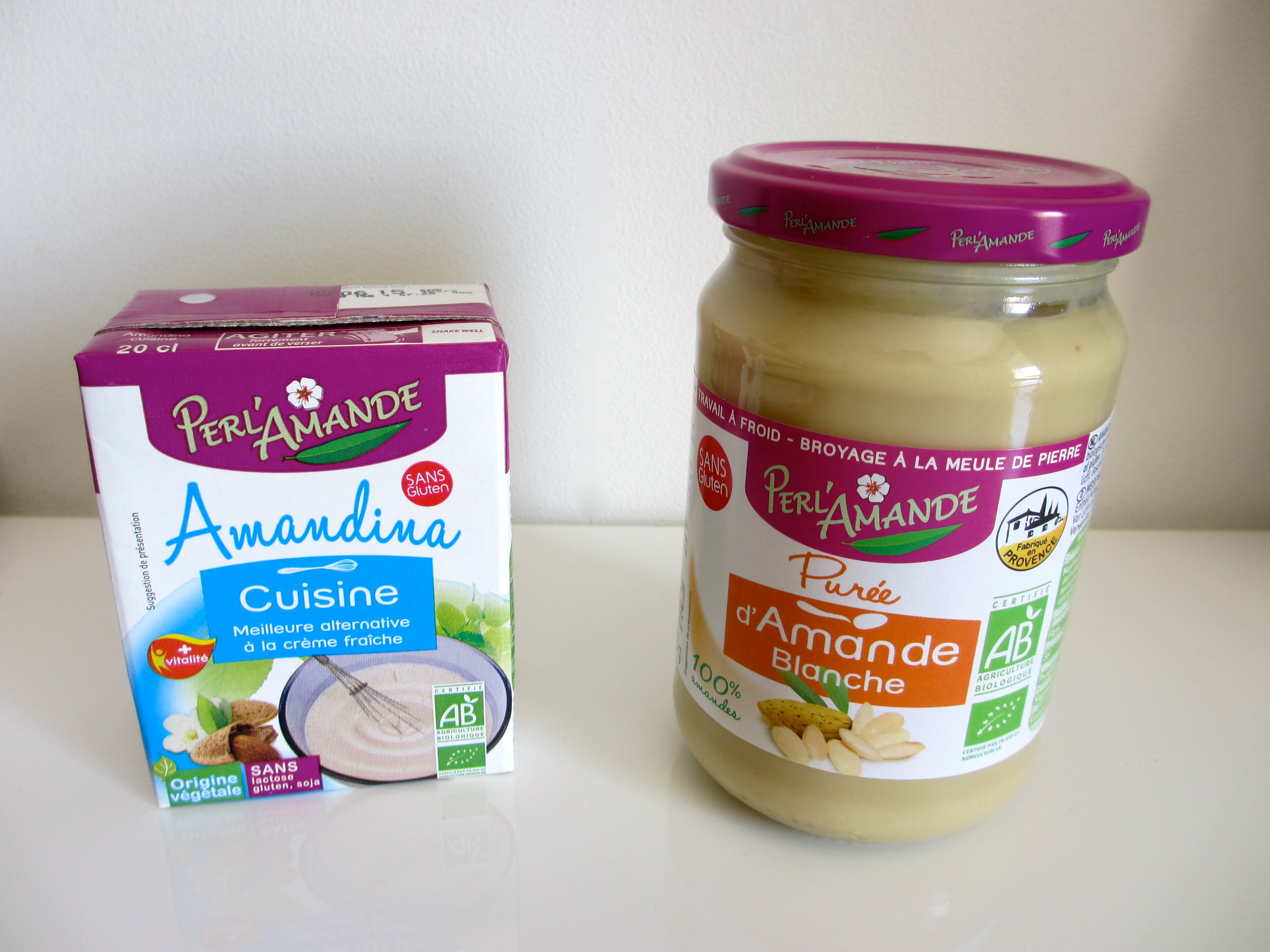 Je remercie mon partenaire Perl’amande. J’ai eu le plaisir de recevoir de l’amandina cuisine et de la purée d’amande blanche.