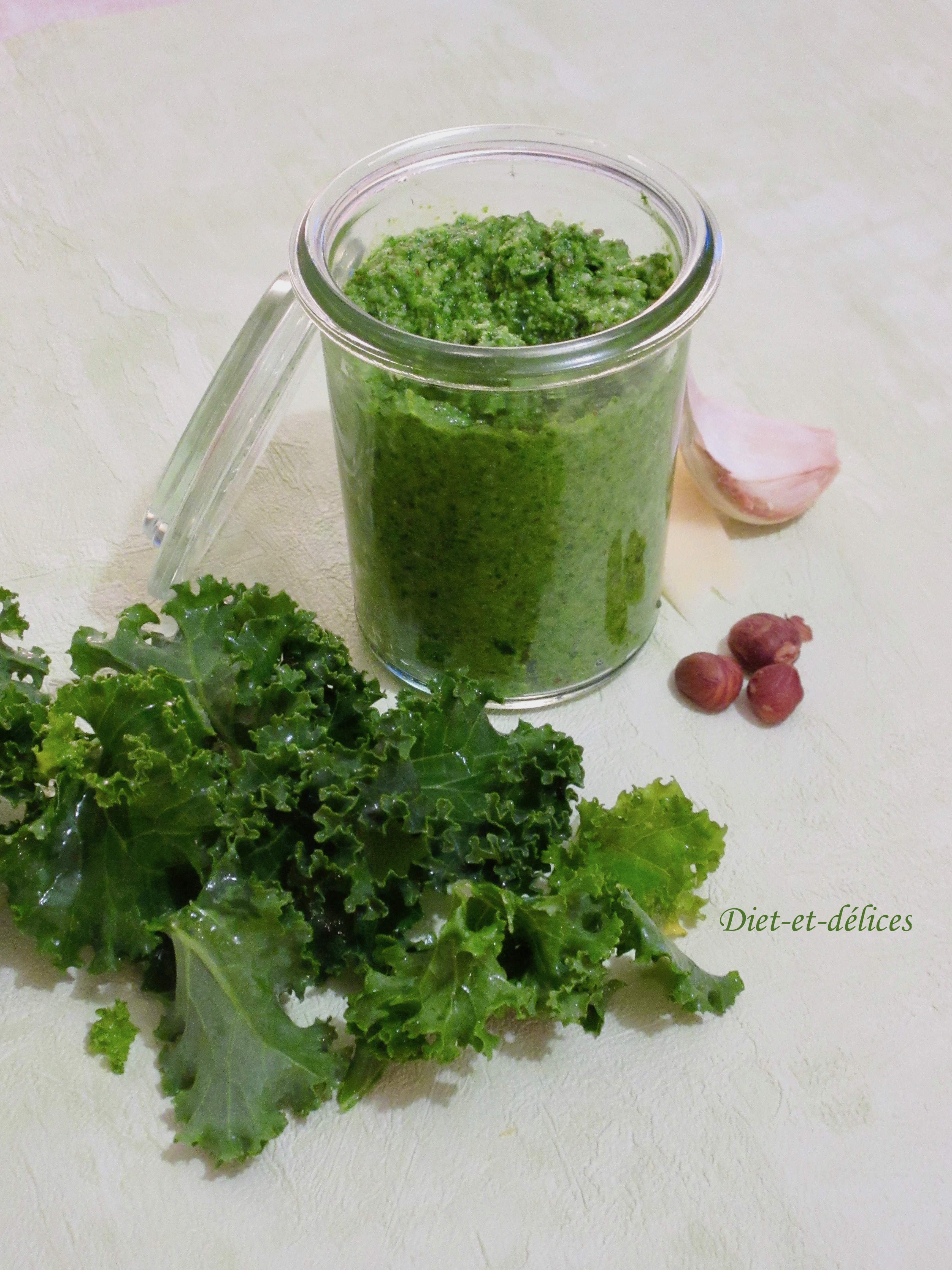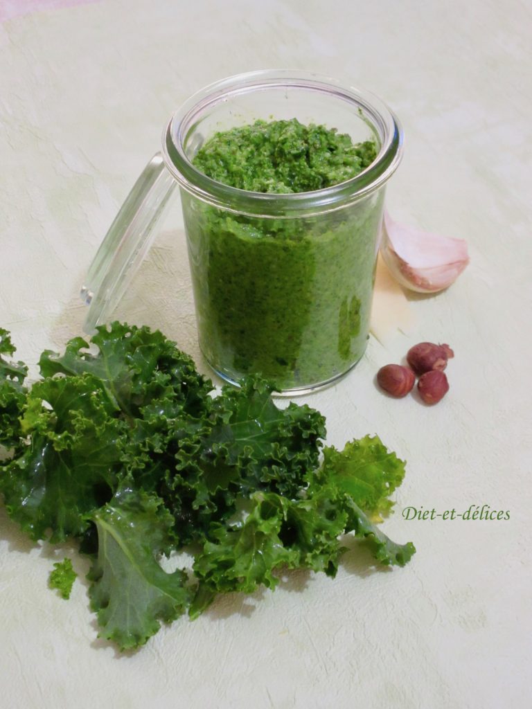 sauce, végétarien, pesto, chou , chou kale, pesto de chou kale, noisettes, huile de noisette, parmesan, ail