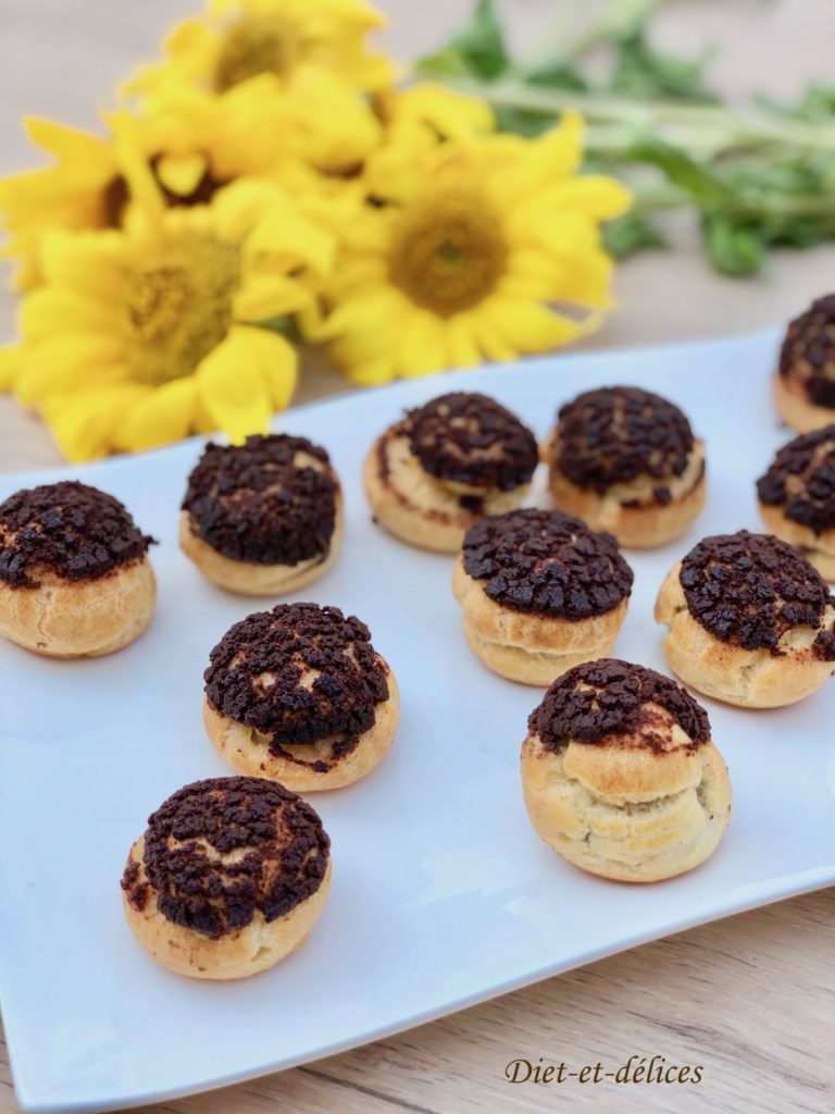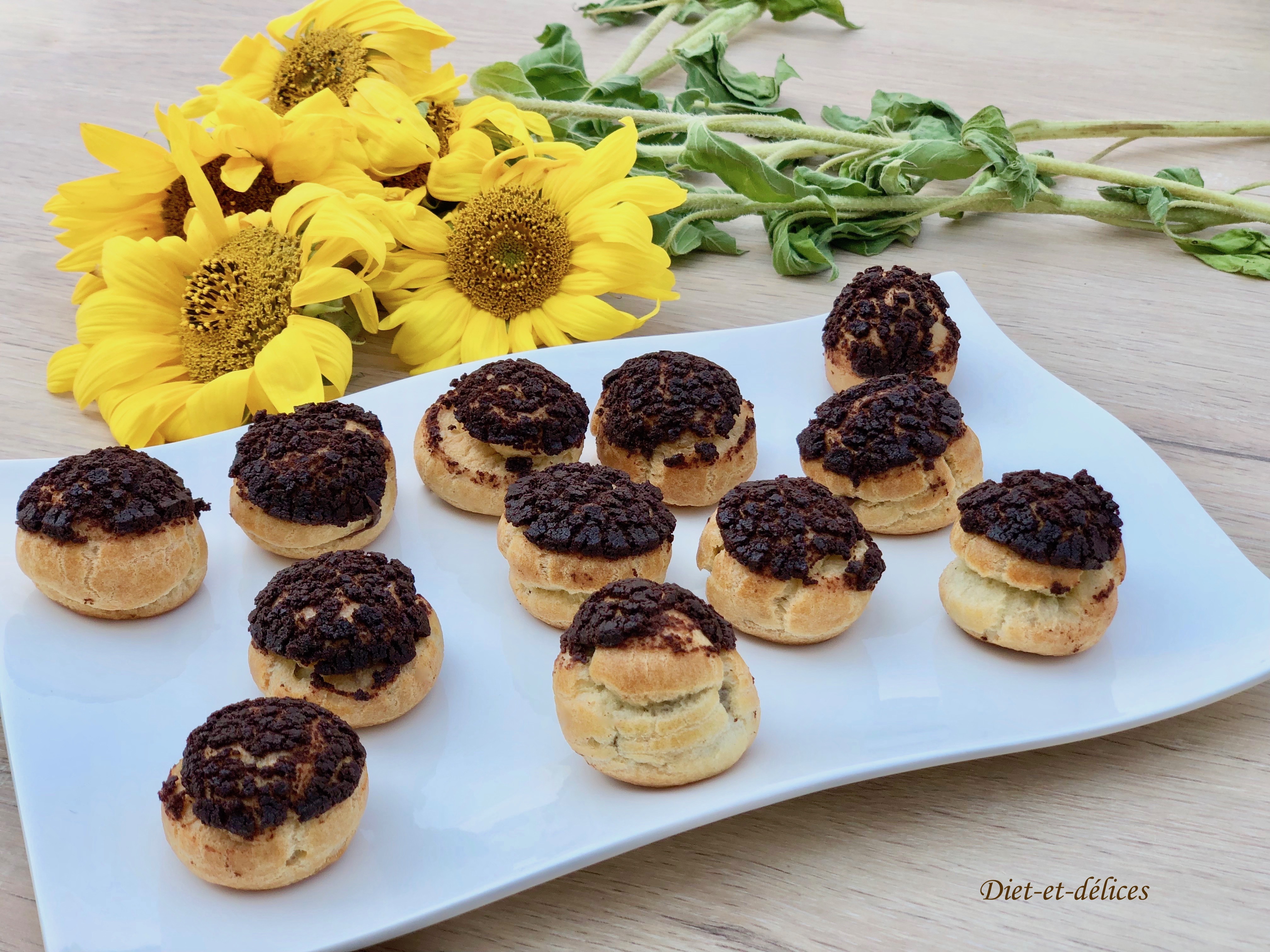 choux, choux à la crème, crème pâtissière, craquelin, cacao, chocolat