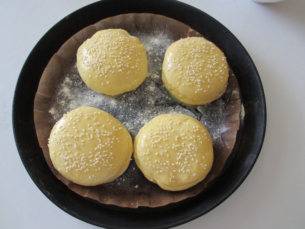 - Battre l’oeuf en omelette et ajouter une pincée de sel. Badigeonner l’oeuf sur les pains à l’aide d’un pinceau en siliconne.