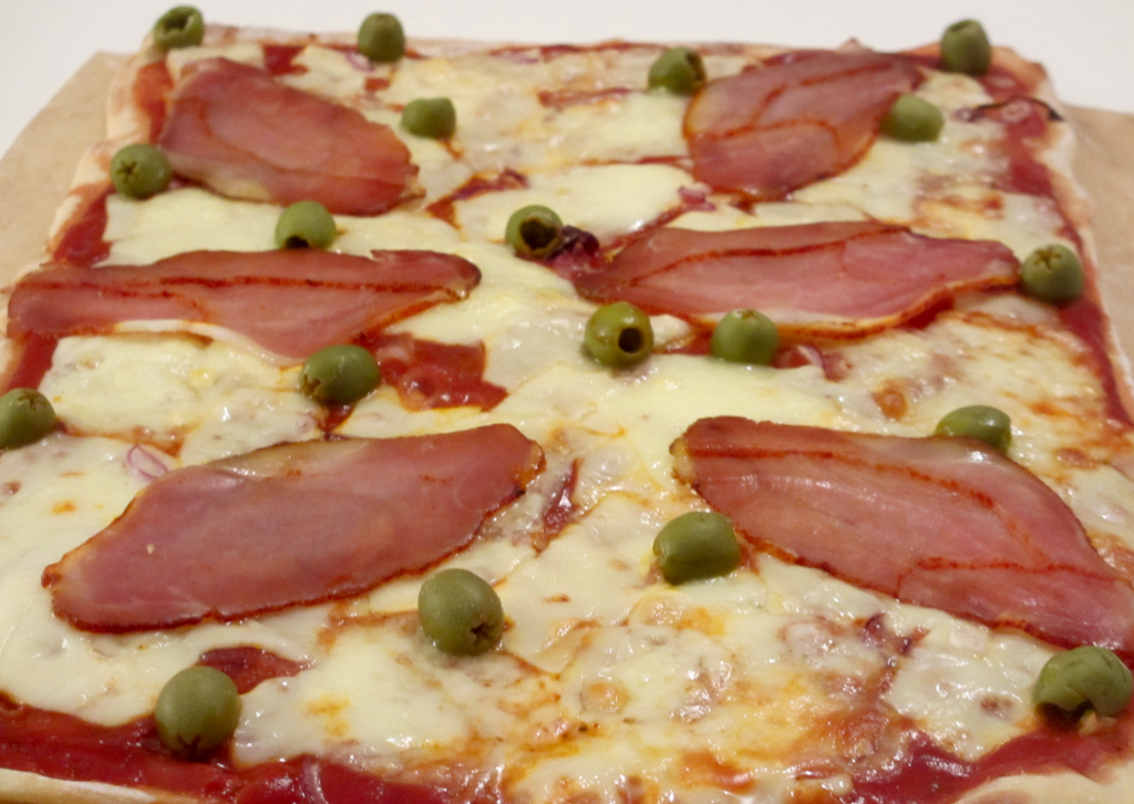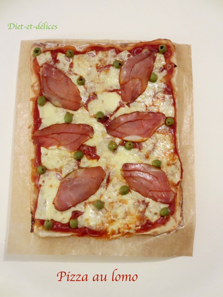 lomo, charcuterie, pizza, cuisine du monde, olives , pizza au lomo, mozzarella, gruyère, coulis de tomate, pizza au fromage, pâte à pizza, origan