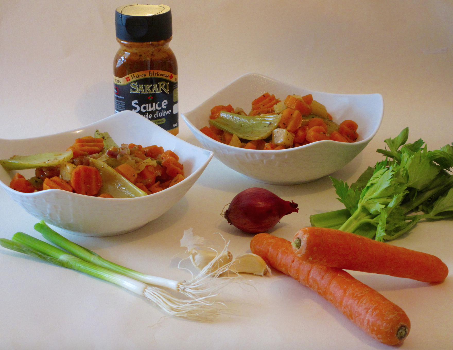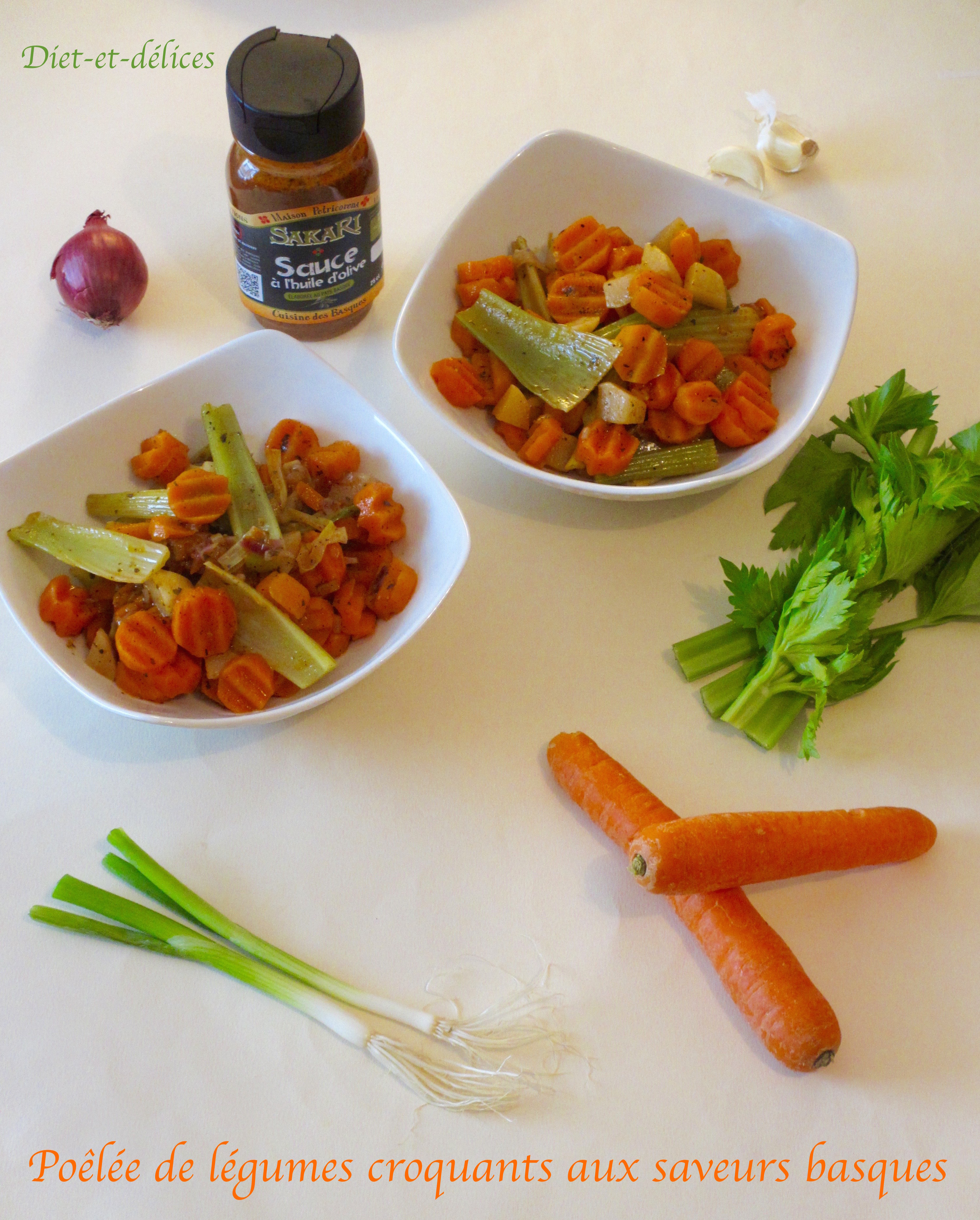 poêlée, légumes, végétarien, poêlée de légumes, carottes, ciboule, cébette, navets, céleri branche, oignon rouge, ail, vegan, sauce basque, diététique, cuisine saine