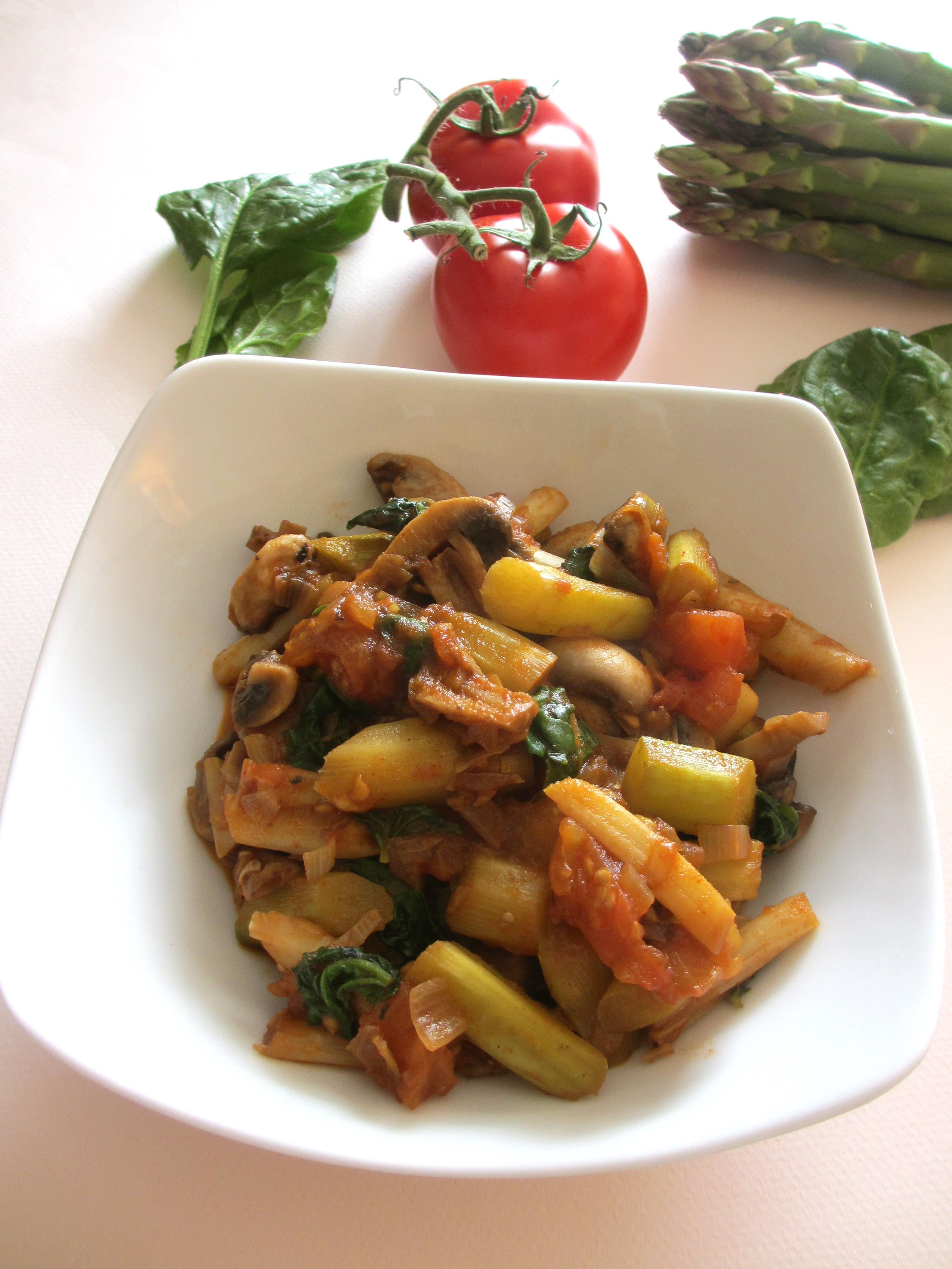 poêlée, asperges,épinards, poêlée de légumes,asperges vertes, tomates, poêlée printanière,asperges blanches, basilic, champignons,champignons de paris, végétalien, cuisine diététique,diététique, cuisine saine, allégée, cuisine allégée,équilibrée