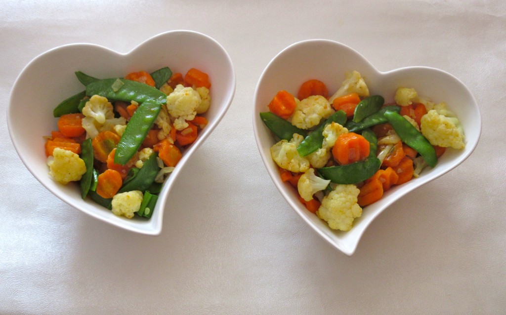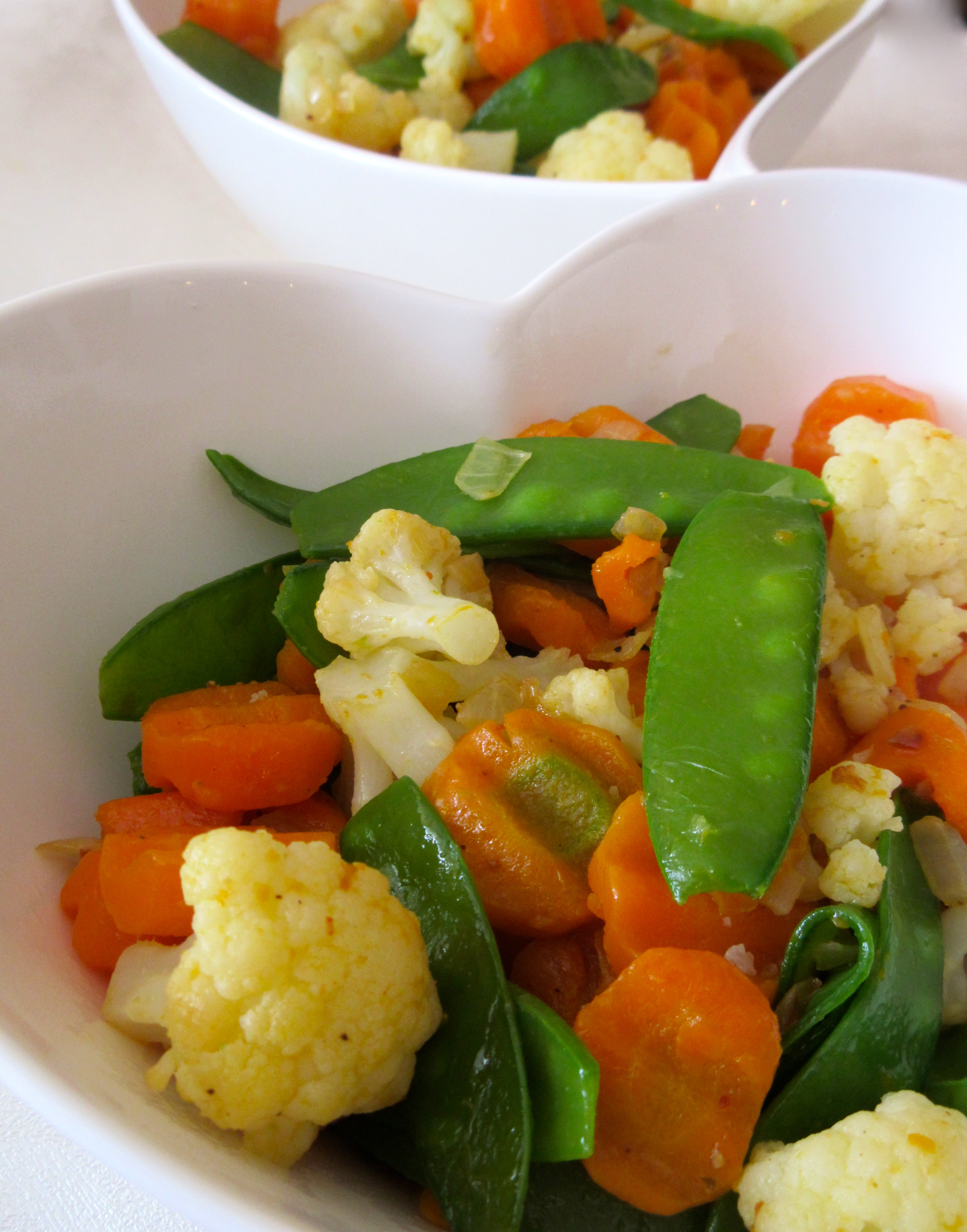légumes, poêlée de légumes, poêlée, chou fleur, pois gourmands,haricots mange tout, carottes, poêlée tricolore, diététique, cuisine diététique, piment d’espelette, accompagnement