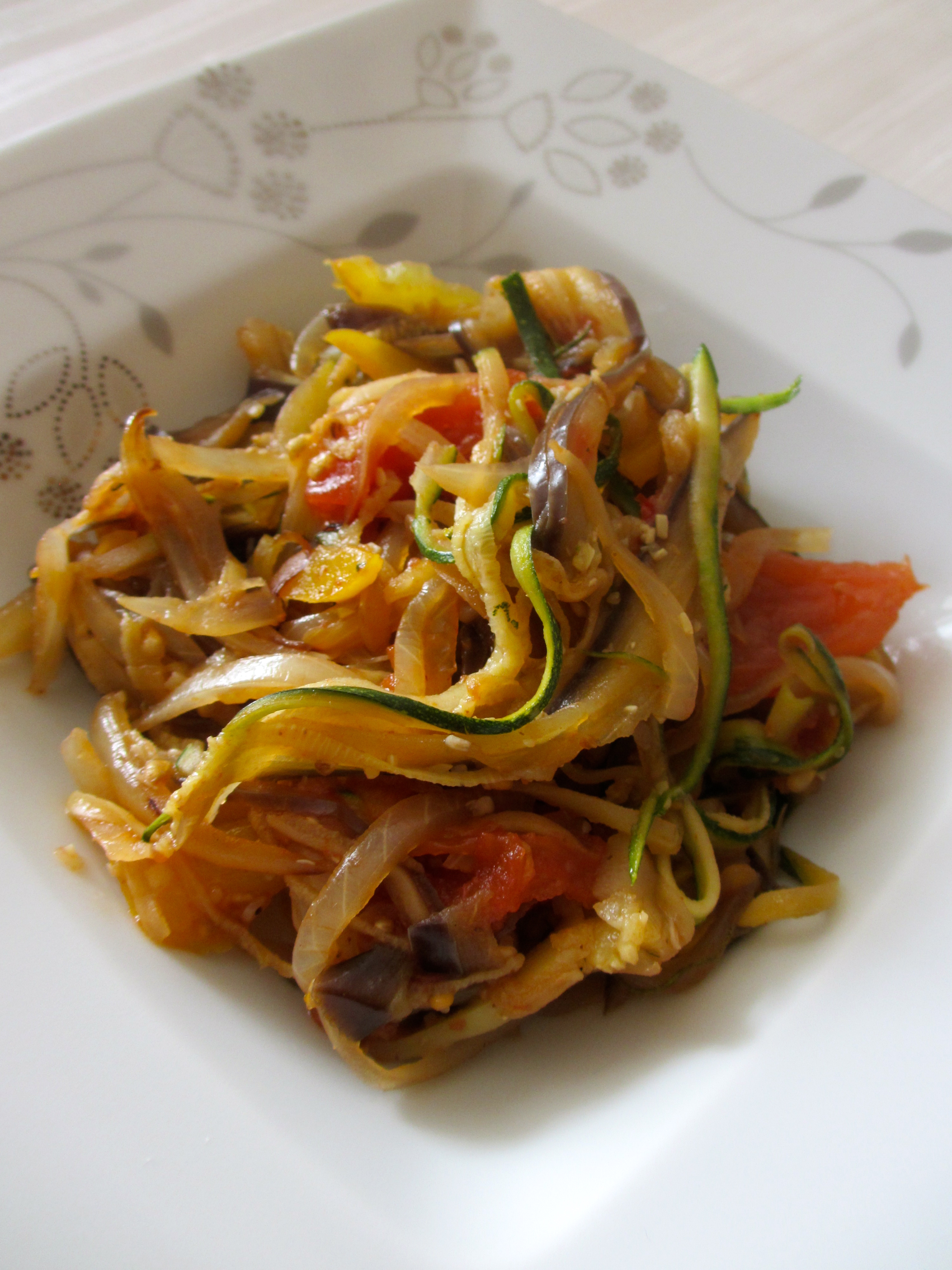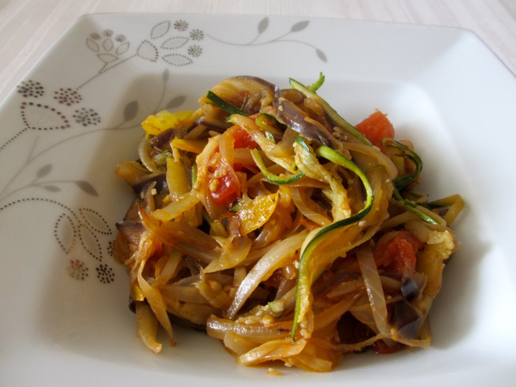poêlée, poêlée de légumes, courgettes, carottes, poivron, aubergine, huile d’olive, oignon, piment d’espelette, ratatouille