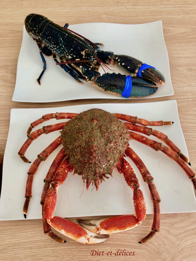 - – homard au barbecue, sur lit de pâtes, sauce au poivron et tomates cerises
