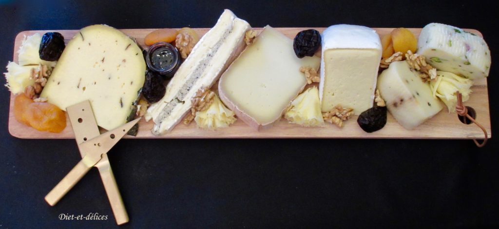 Un beau plateau qui me donne envie 🙂 J’adore le fromage, pâte dure, pâte molle, chèvre… accompagné d’un petit pain aux noix ou à l’abricot sec, quel délice !