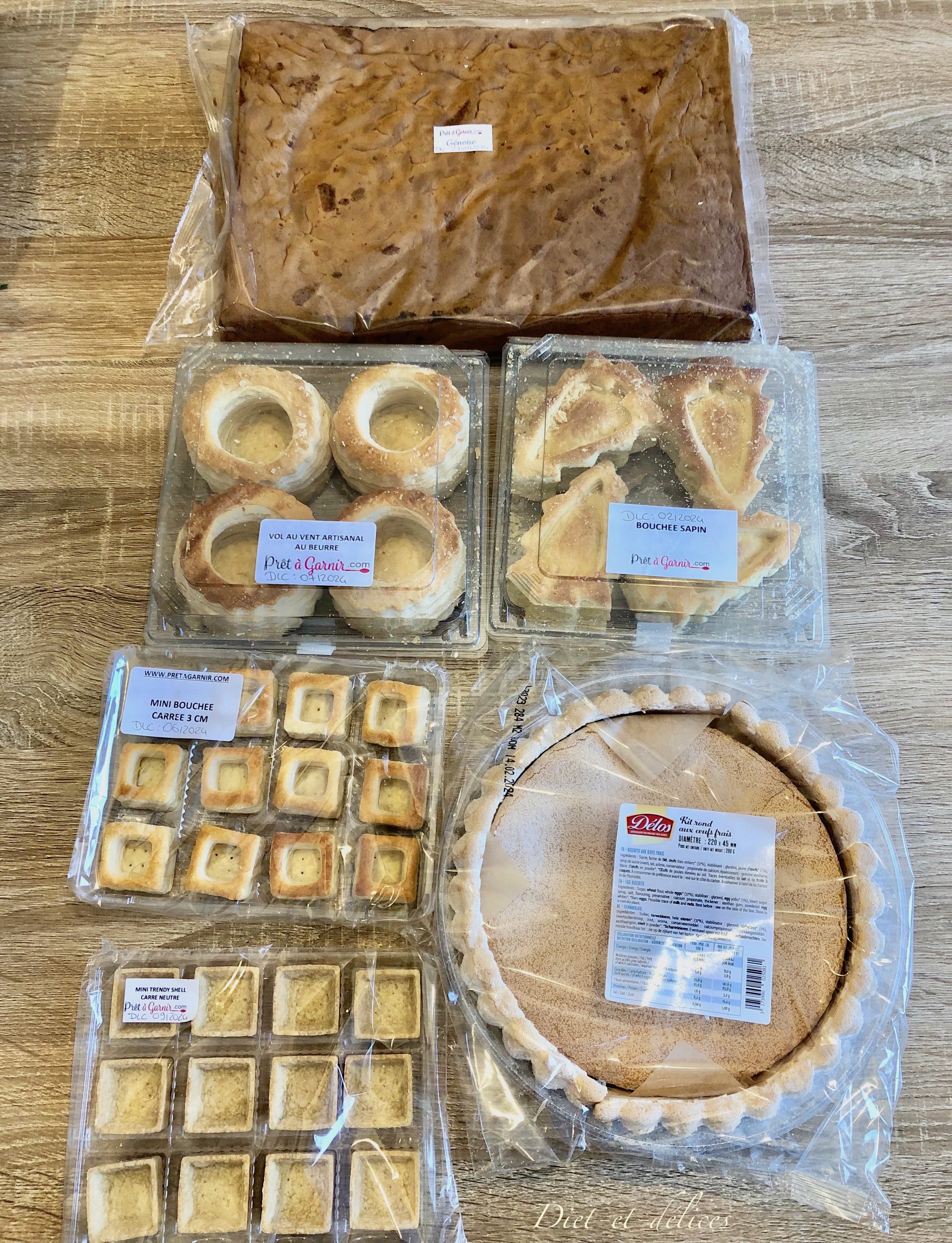 - pour le plat principal : des vol au vent, bouchées classiques, carrées ou en poisson, des fleurons, des rouleaux, …