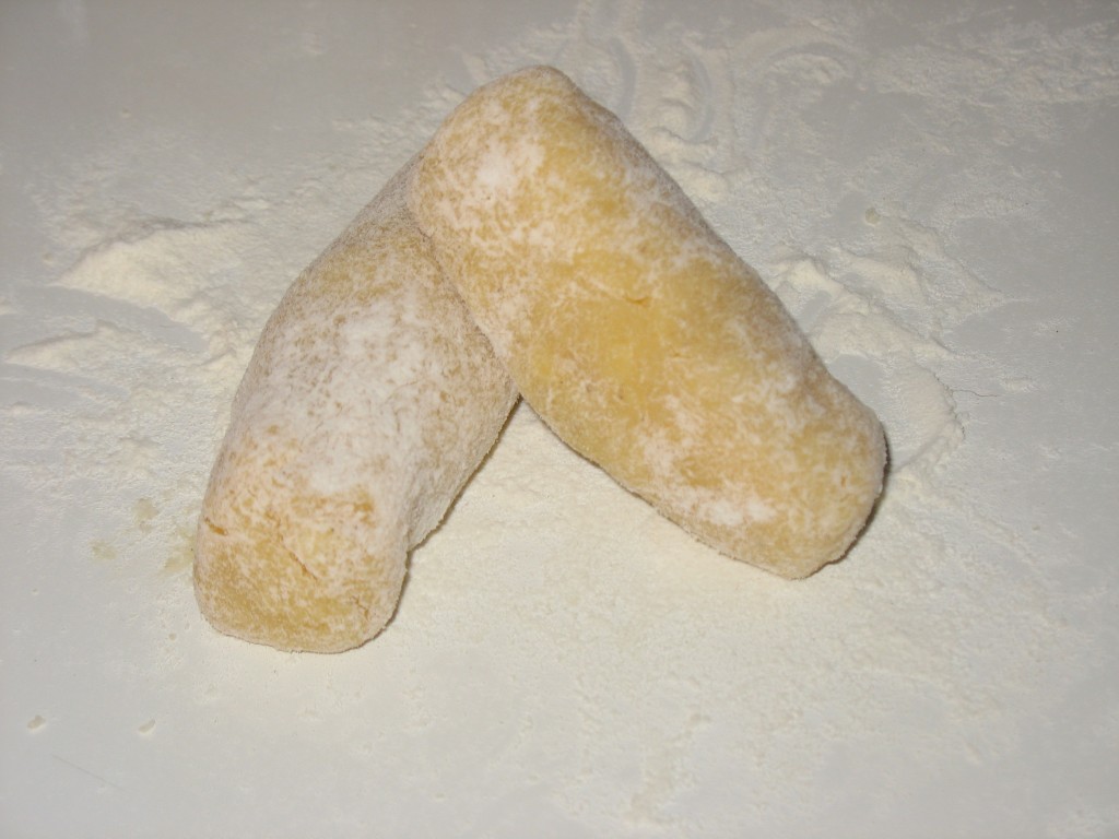 - Etaler la farine sur le plan de travail. Quand la pâte est tiède, former les quenelles à la main. Elles devront avoir un diamètre d’environ 3 cm.