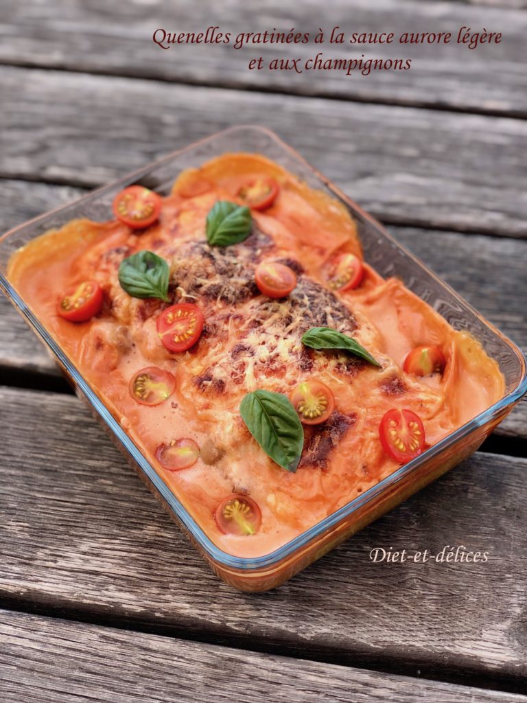 quenelles, gratin , quenelles gratinées, sauce aurore, tomates cerises, plat complet