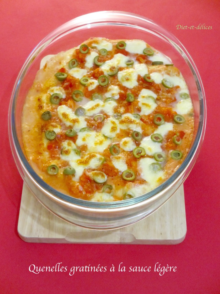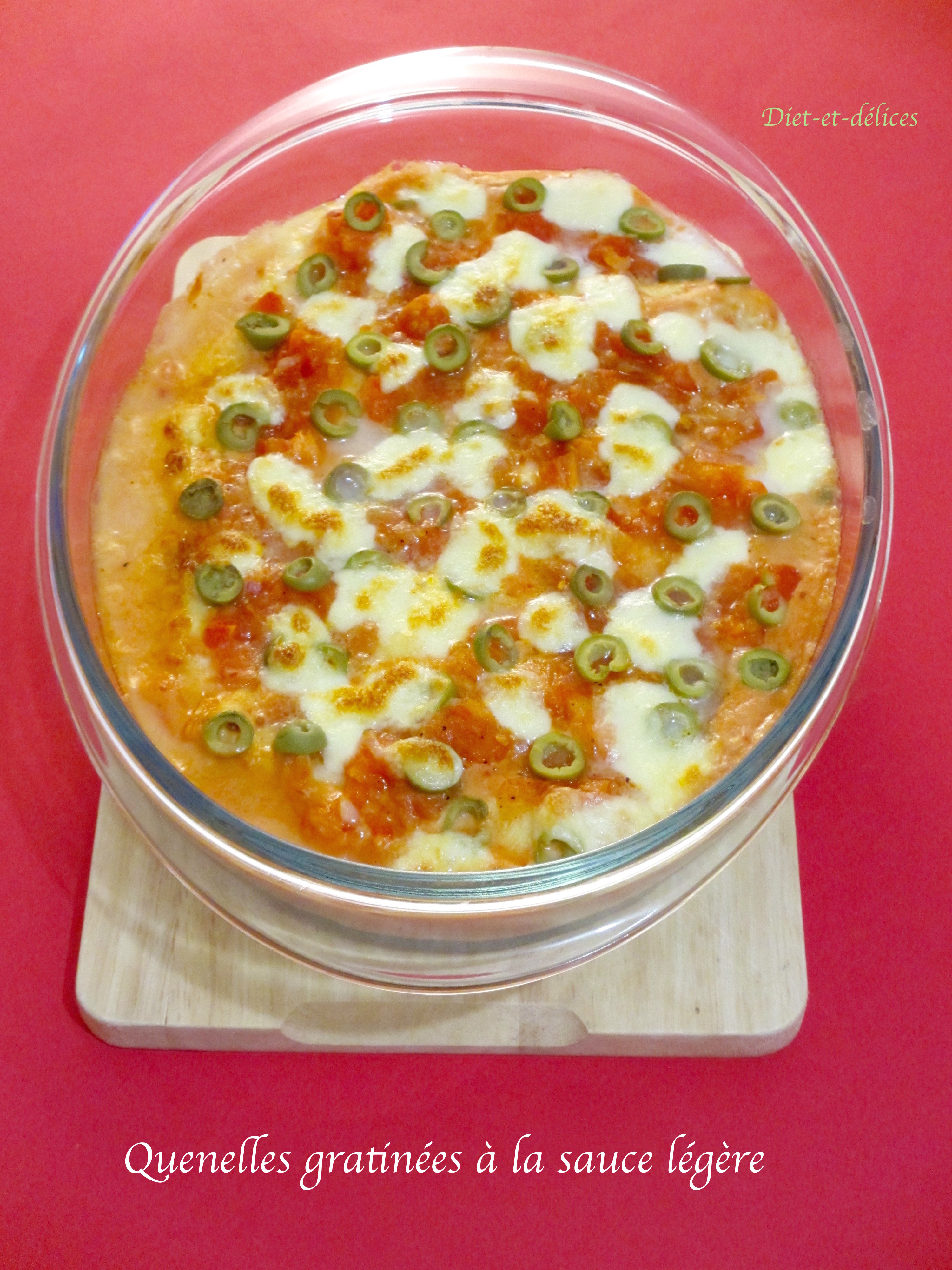 quenelles, quenelles gratinées, sauce béchamel , quenelles à la sauce béchamel, quenelles gratinées à la sauce béchamel, sauce béchamel à la tomate, quenelles à la sauce béchamel à la tomate, tomate, béchamel allégée, olives, béchamel, plat complet