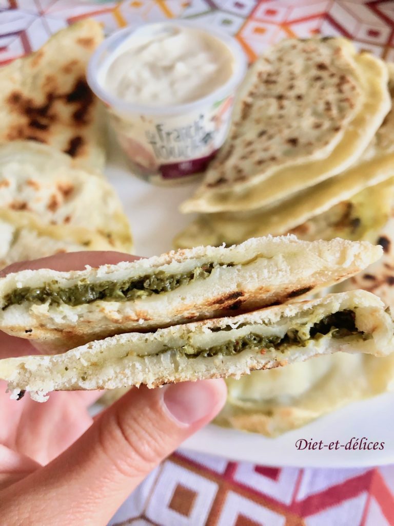 – Concernant la farce, diverses herbes peuvent être utilisées : coriandre, aneth, basilic, estragon… ou encore une garniture à base de courge et de grenade. Le Qutab peut aussi être servi accompagné de yaourt à la coriandre et au sumac. Du fromage peut également être incorporé dans la farce des galettes. Traditionnellement, c’est le Panir ou Paneer qui est utilisé, mais on peut le remplacer par de la feta.