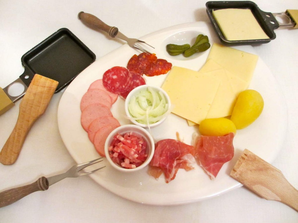 – La raclette est née dans les montagnes suisses au Moyen Age. Traditionnellement, le fromage était fondu en meule, près de la cheminée et on raclait au fur et à mesure de la fonte au coin du feu.