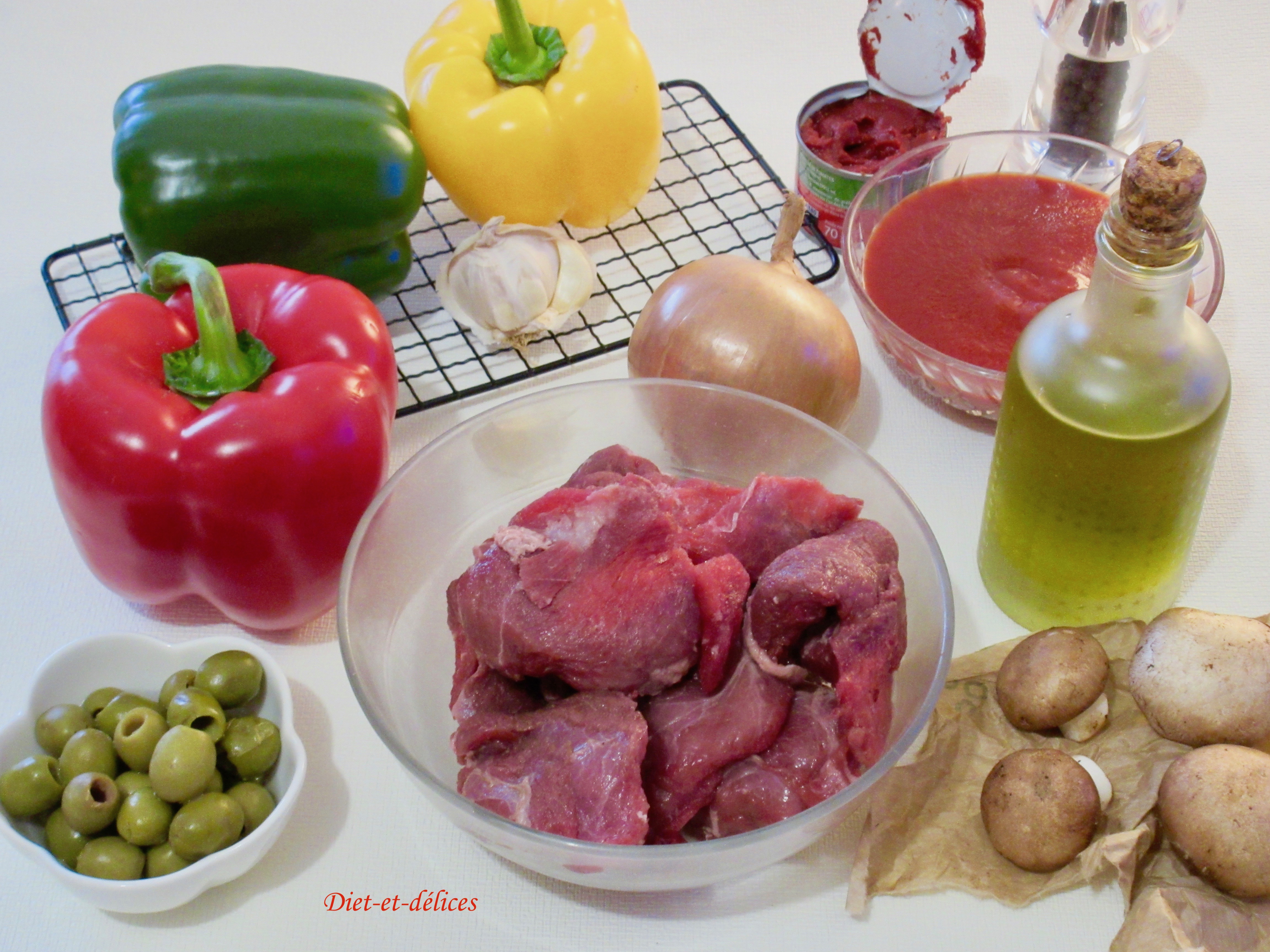 marcassin, ragoût, gibier, coulis de tomates, poivrons, concentré de tomates, plat mijoté