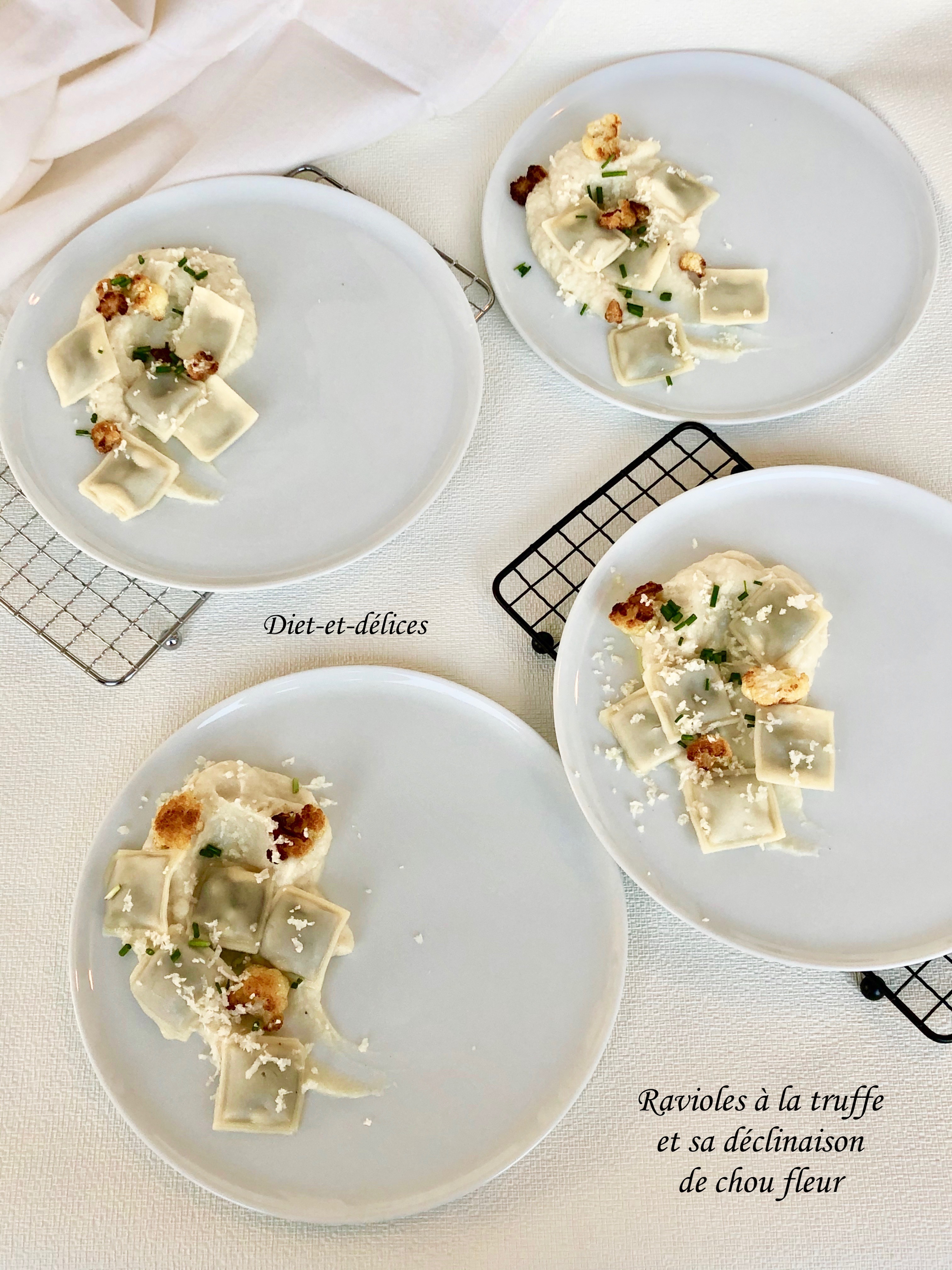 entrée, entrée chaude, ravioles, chou fleur, crème de chou fleur, ravioles à la truffe