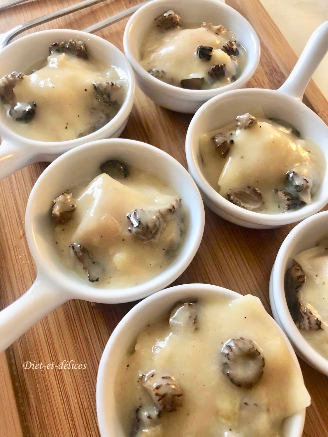 apéro, apéritif, ravioles, foie gras, morilles, sauce aux morilles
