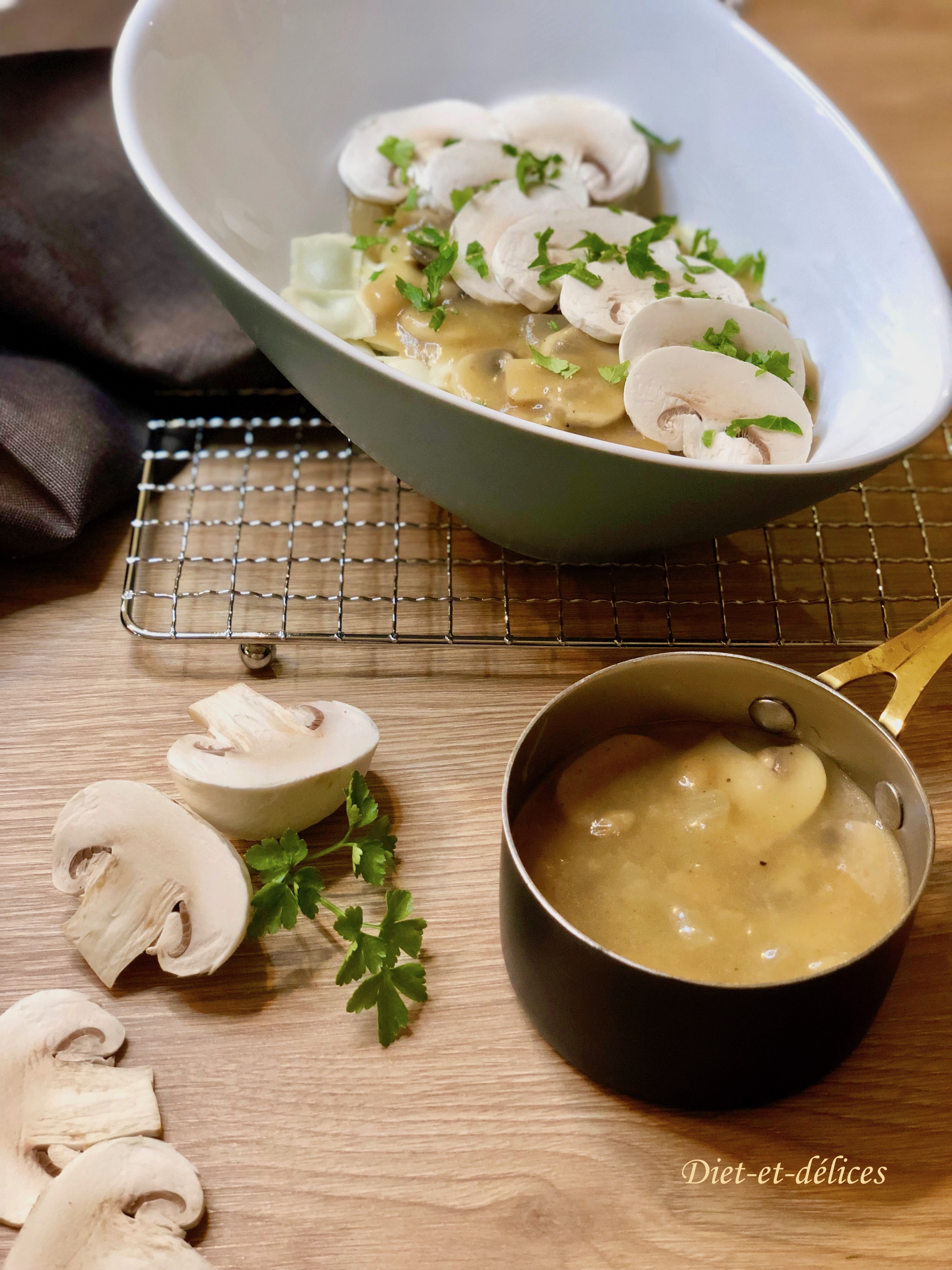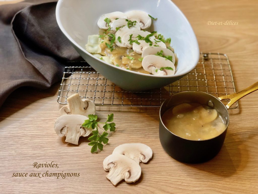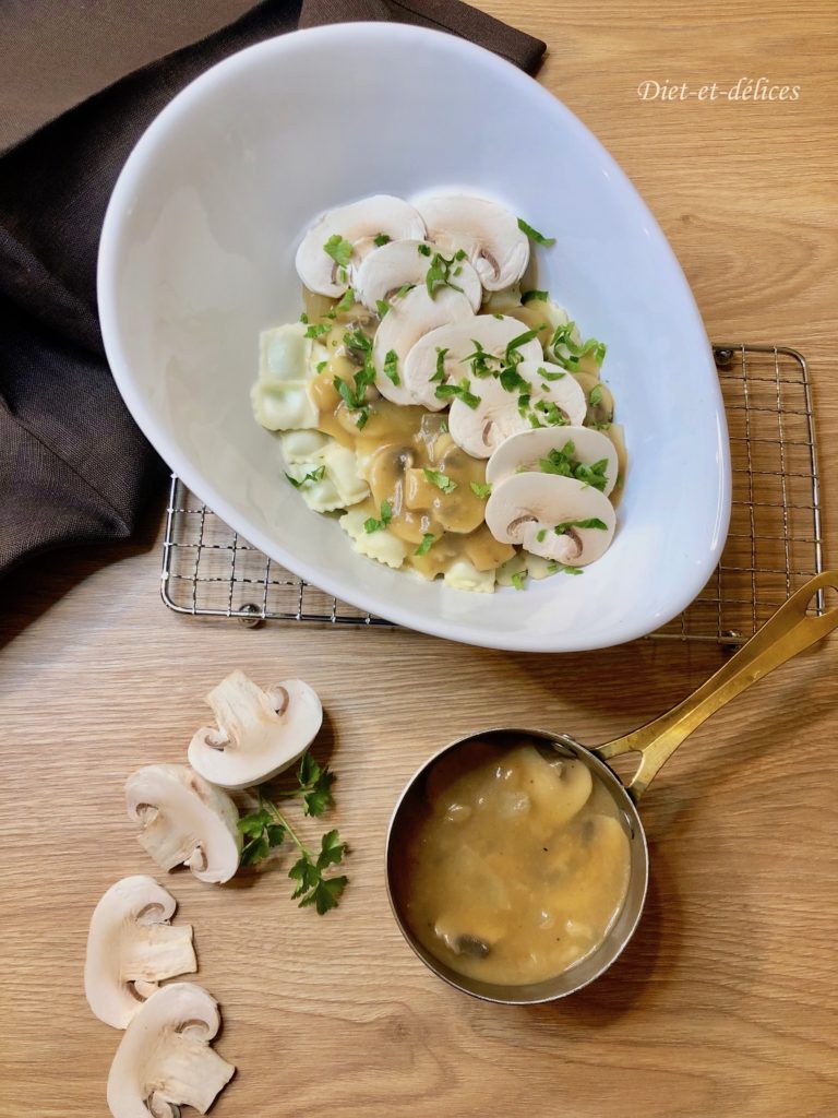 ravioles, champignons, sauce aux champignons, plat complet, sauce