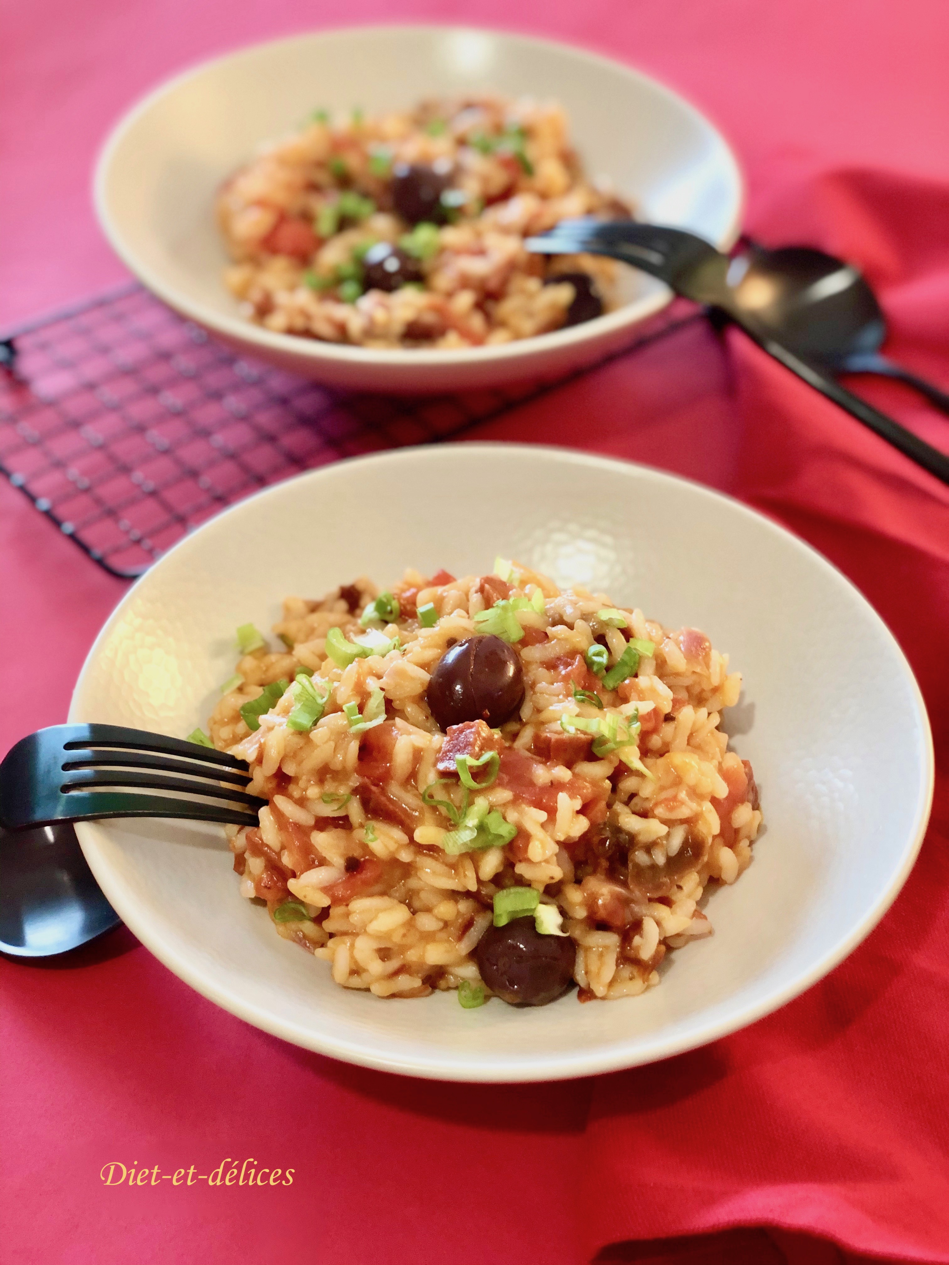 20 minutes de cuisson et de patience valent vraiment la peine pour déguster un risotto onctueux et relevé au bon goût de chorizo.