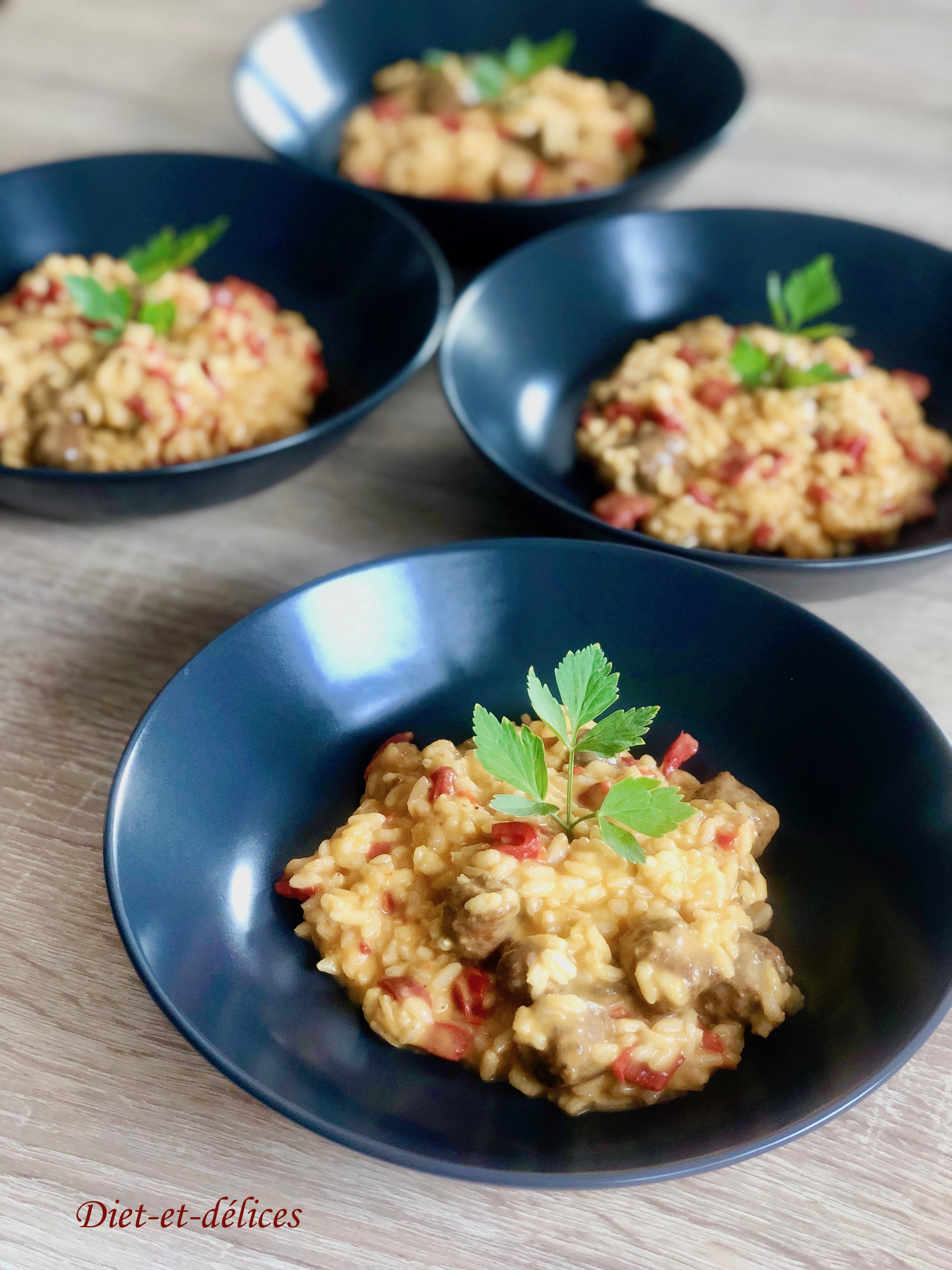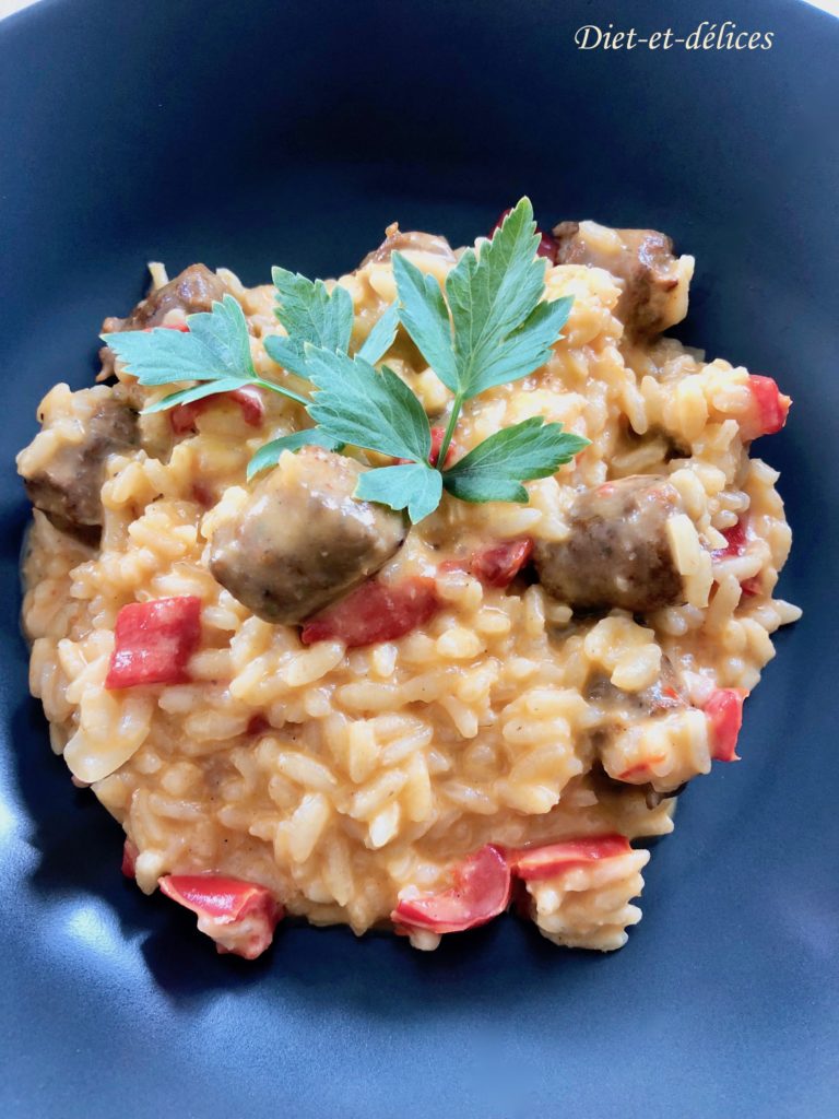 Accueil » Recettes » Féculents » Risotto aux merguez et aux poivrons rouges