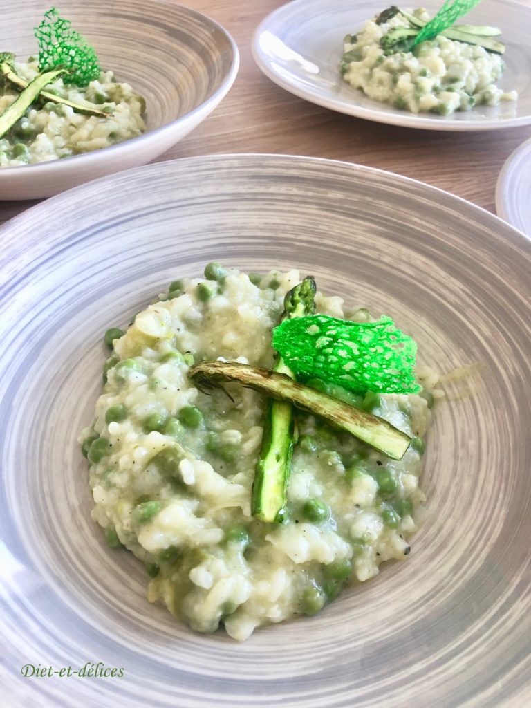 risotto, asperges, petits pois, risotto aux asperges, riz, asperges vertes, parmesan, végétarien, vin blanc