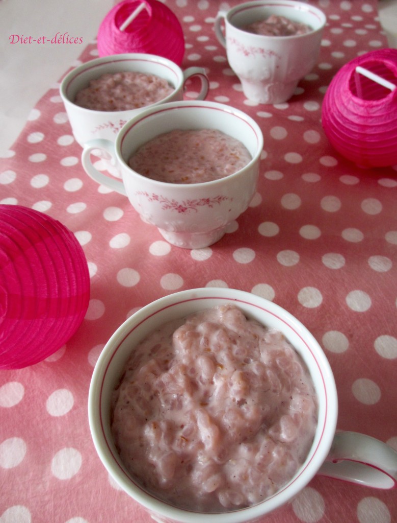 Les framboises donnent une touche girly à ce riz au lait. Original. Belle journée