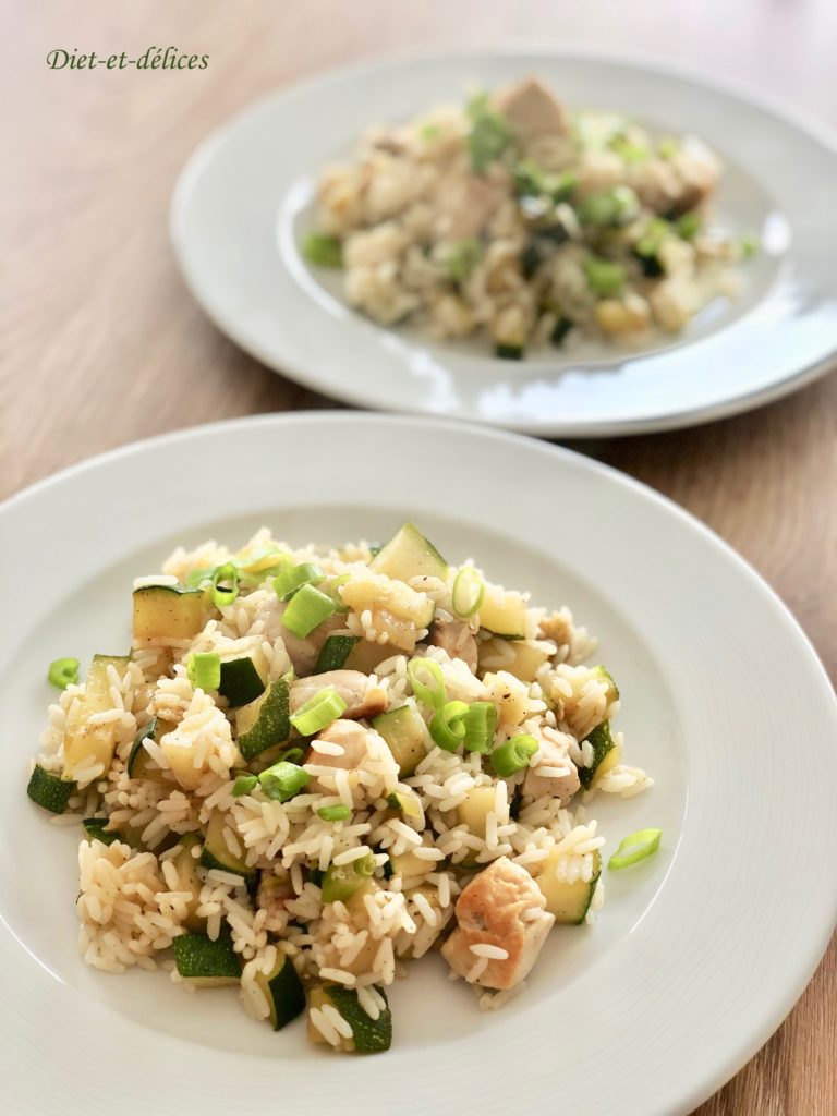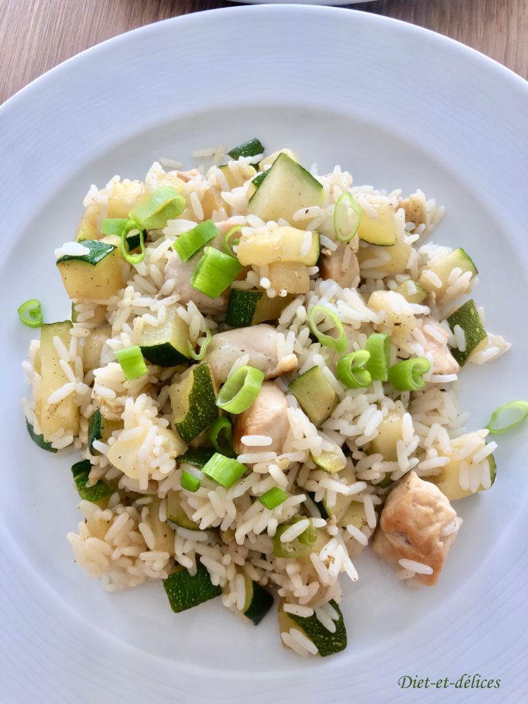 riz, poulet, courgette, plat complet, filet de poulet, oignon ciboule