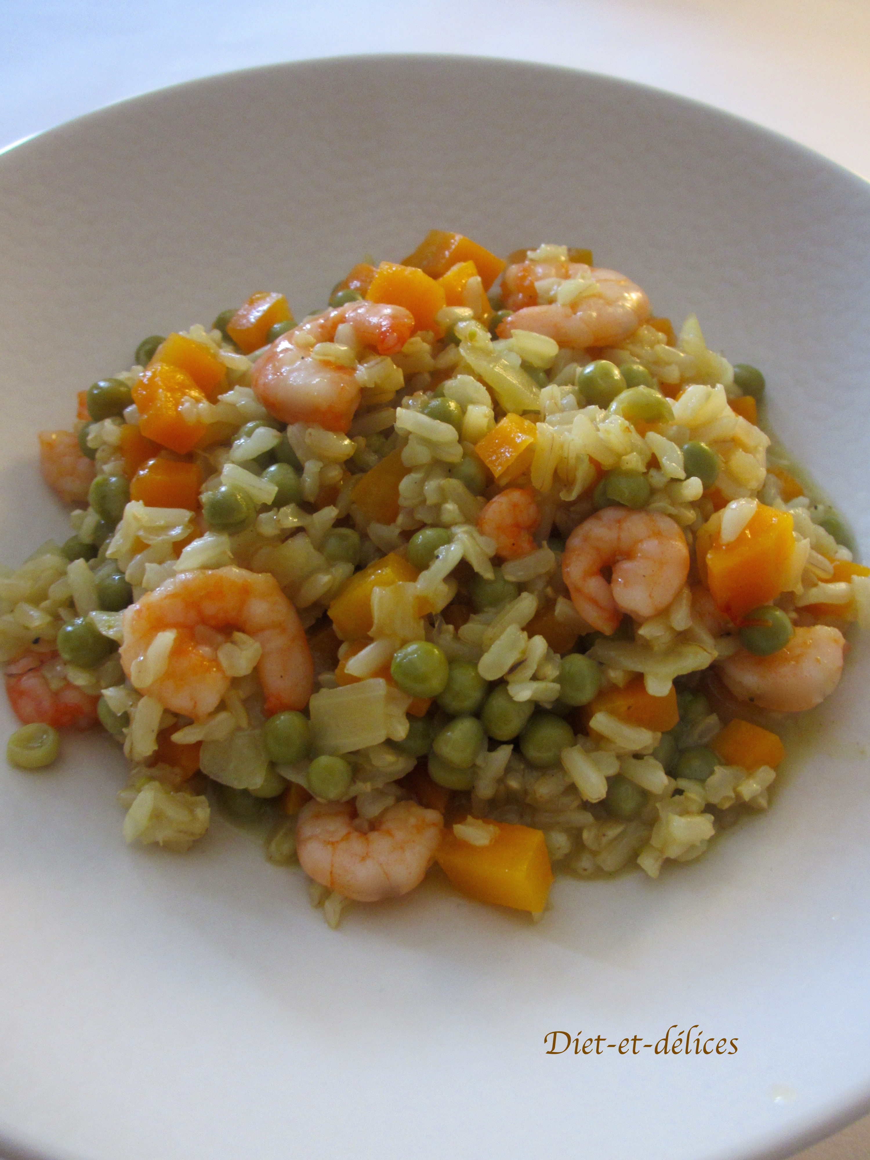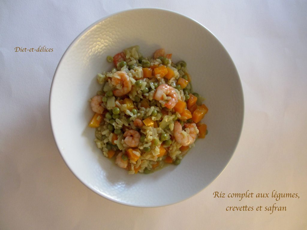 riz, riz complet, crevettes, riz aux légumes, courgettes, carotte, safran, plat complet, petit pois