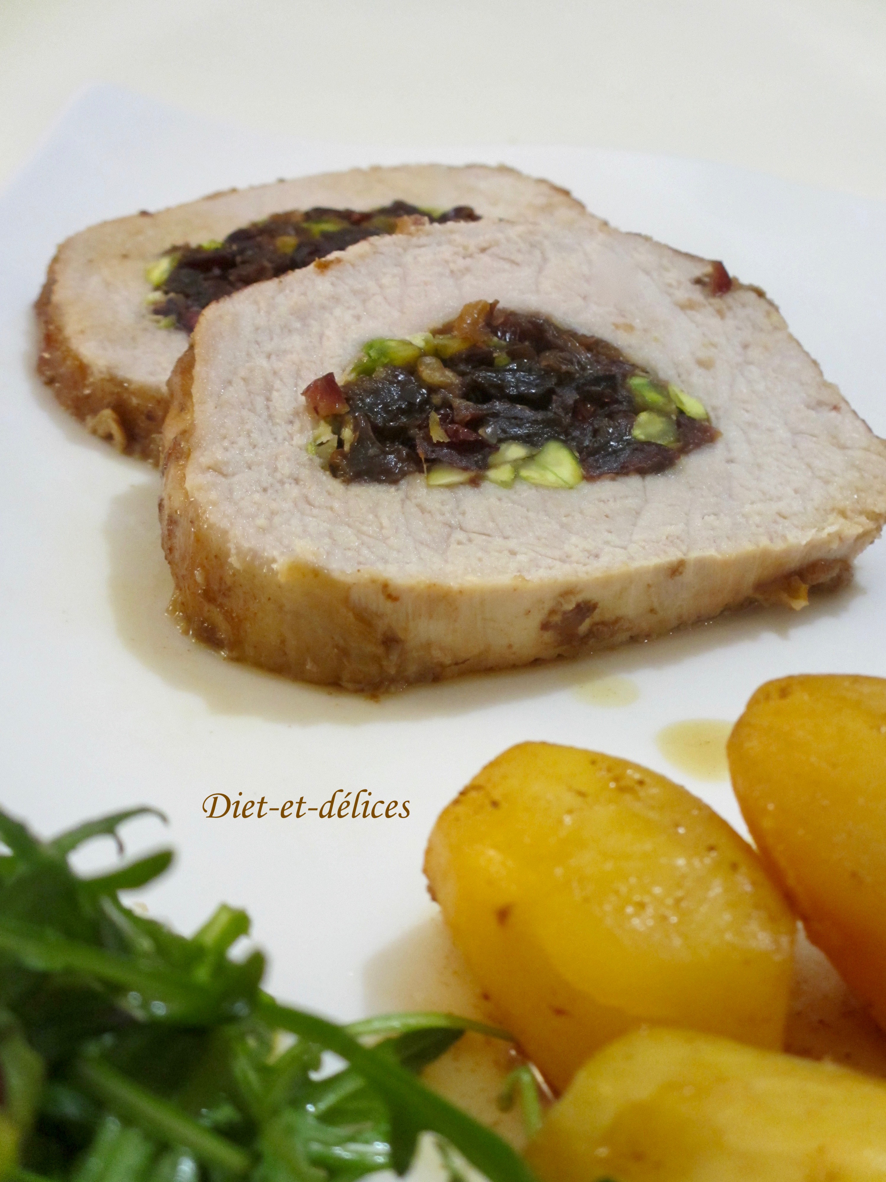 rôti, porc, canneberges, rôti de porc, raisins secs, pistaches, rôti de porc aux fruits secs, sirop d’érable, porto