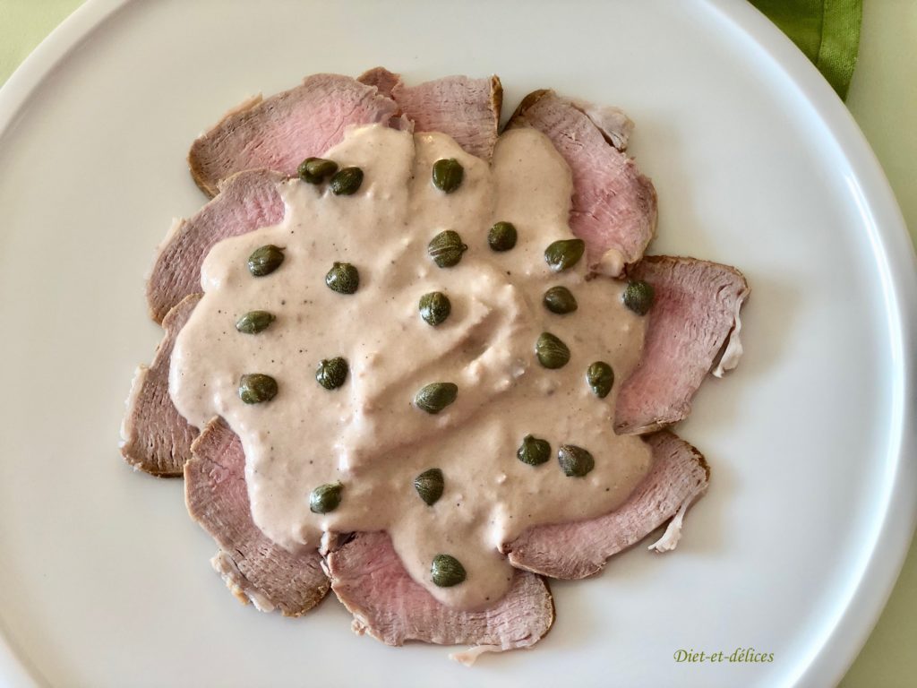 vitello tonnato, cuisine italienne, veau, thon, anchois, rôti de veau, câpres, sauce au thon, hyperprotéiné