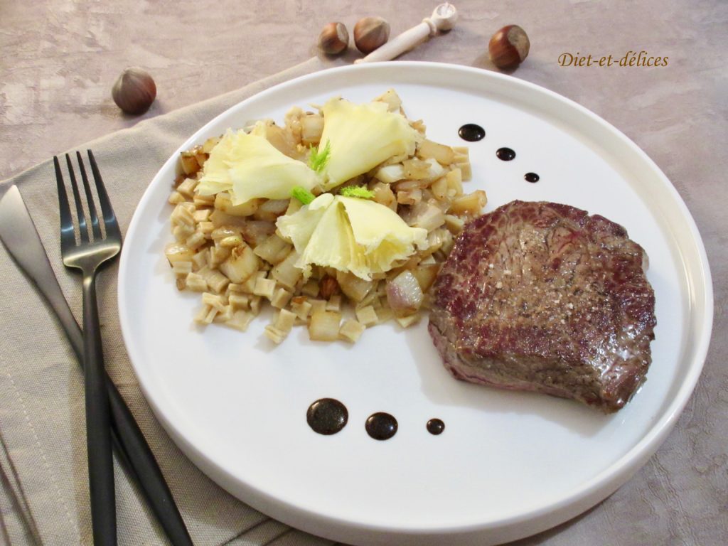 - – Entrecôte d’Angus, purée de panais et poêlée de girolles