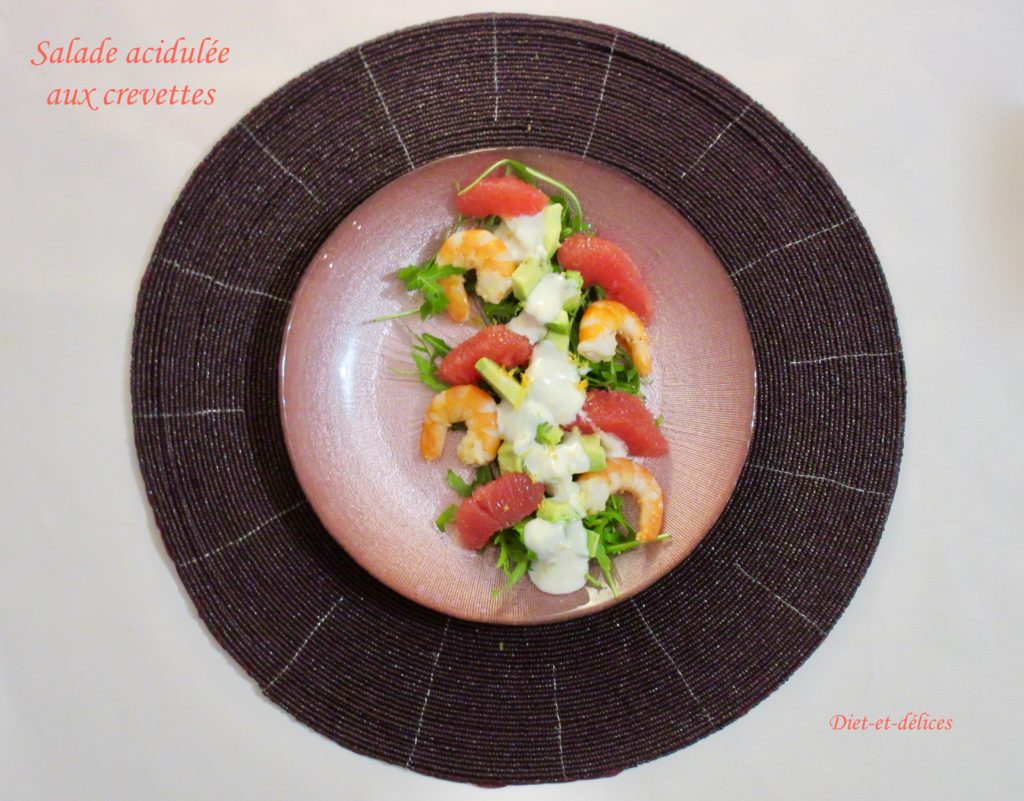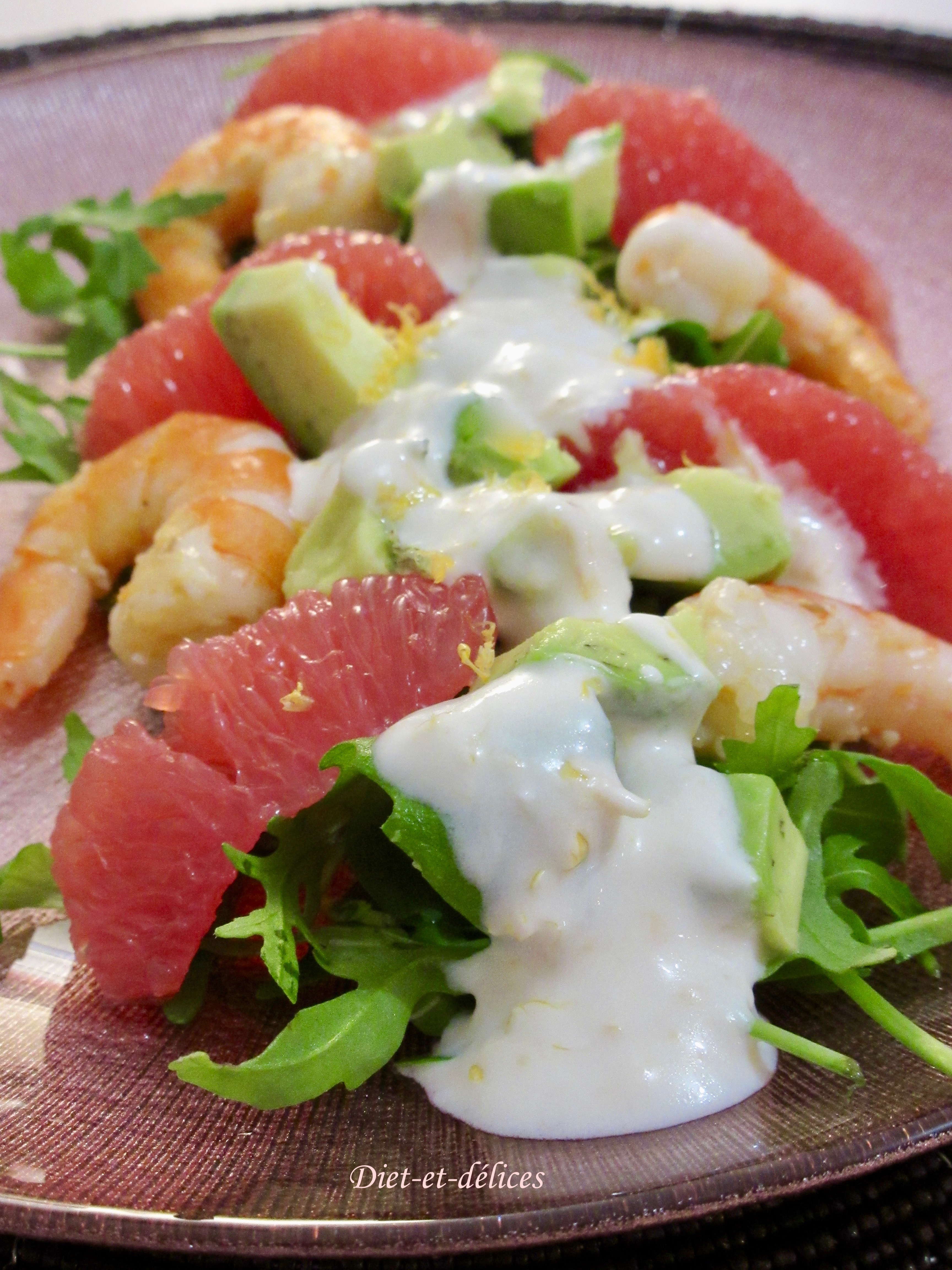 salade, roquette, pamplemousse, crevettes, fromage blanc, diététique, avocat