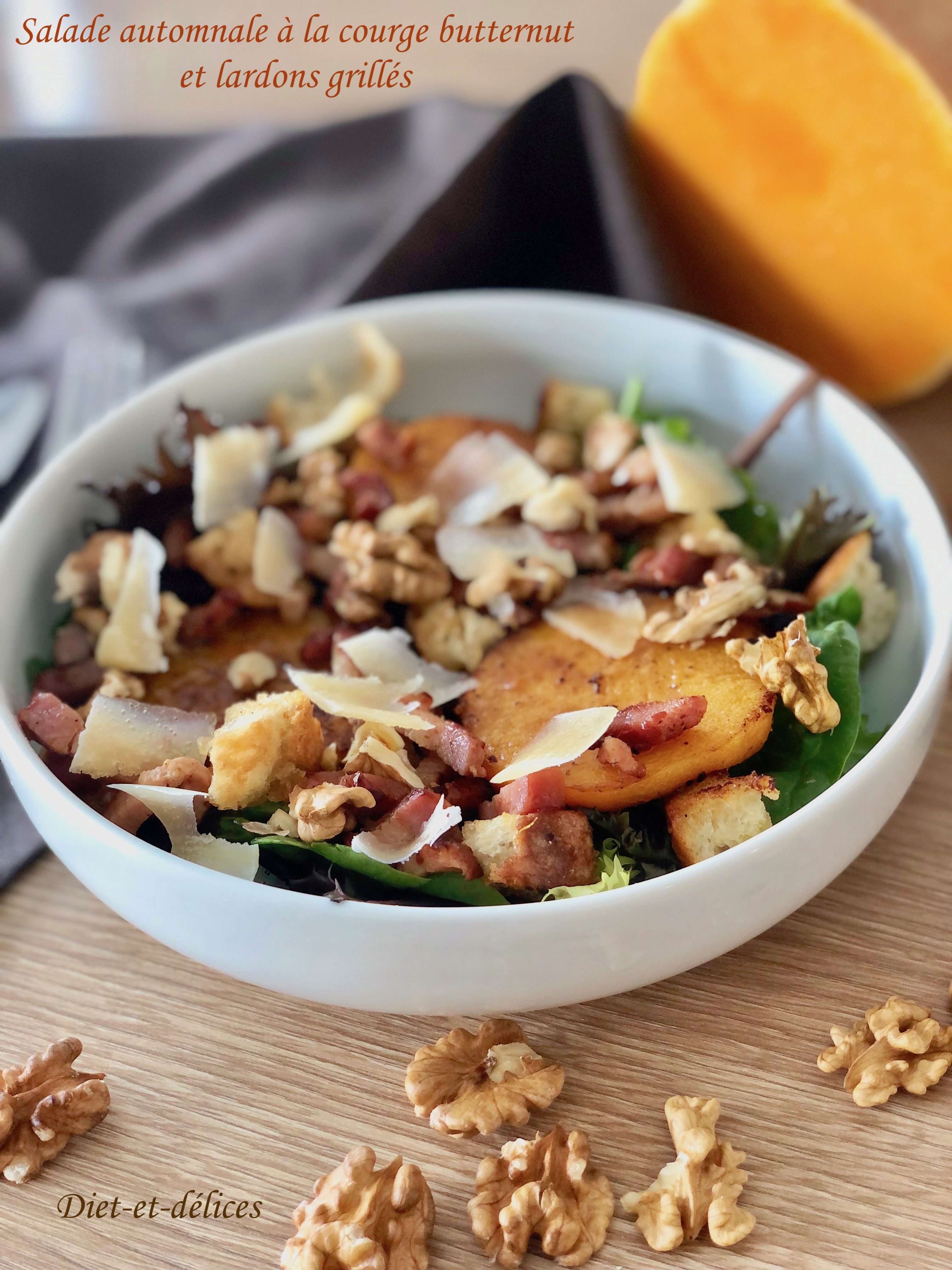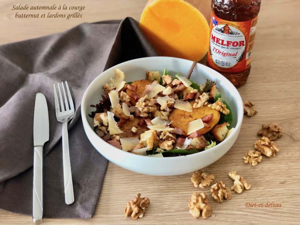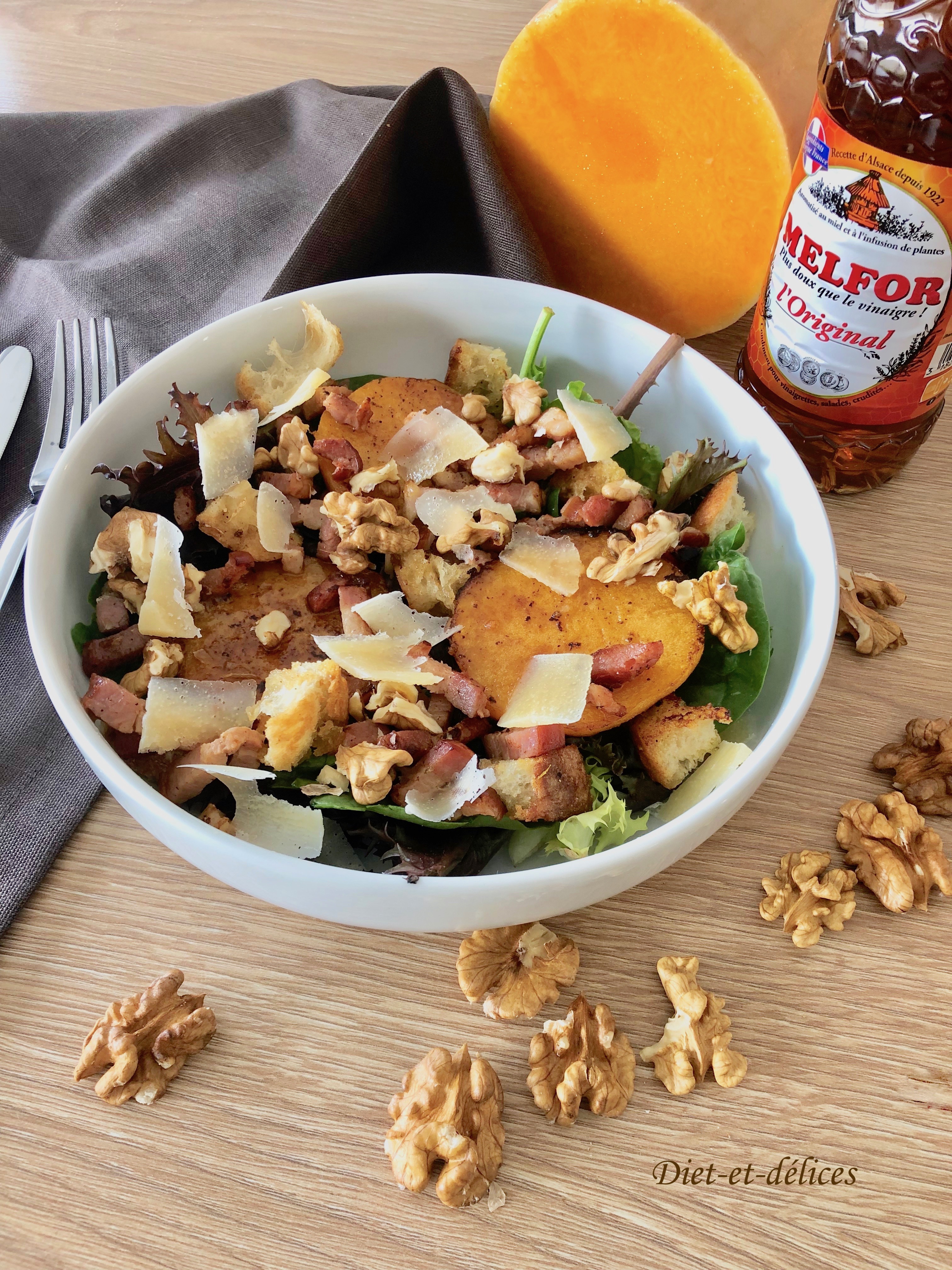 salade, salade composée, butternut, lardons, melfor, noix, plat complet, parmesan