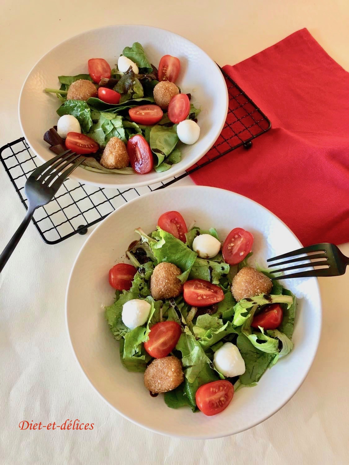 salade, tomate, mozzarella, tomate mozzarella, mesclun, mozzarella panée, salade, tomates cerises, mozzarella, mesclun, tomate mozzarella, mozzarella panée
