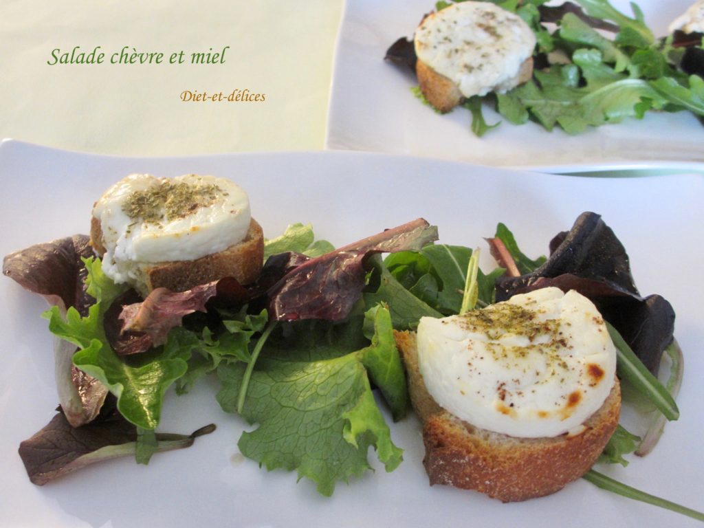 salade, chèvre, bûche de chèvre frais, végétarien, miel d’acacia, toast de chèvre au miel