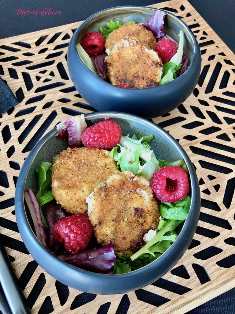 salade, chèvre pané, framboise, fromage de chèvre, sarriette, origan