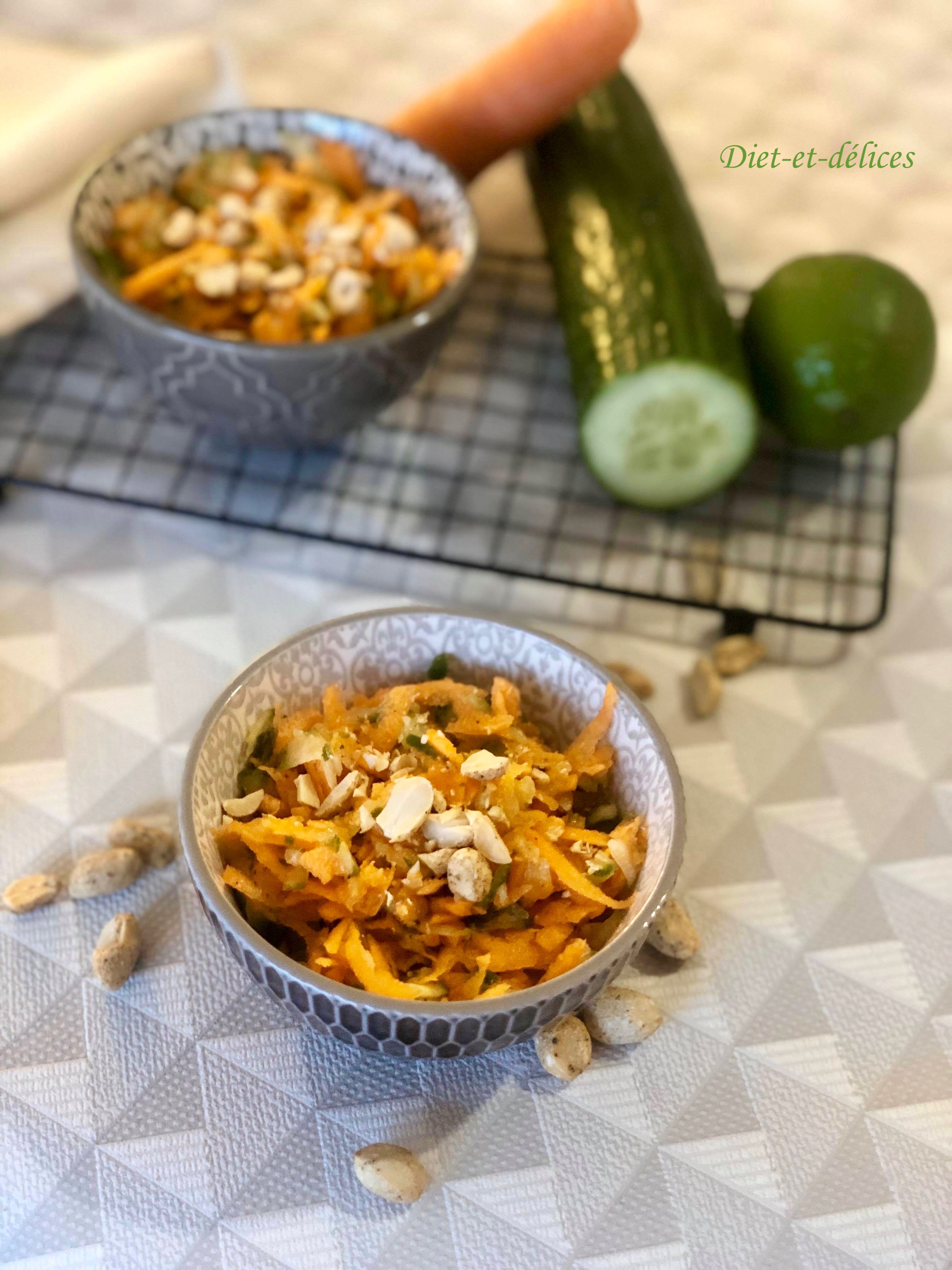 concombre, carotte, crudités, gingembre, cacahuètes, jus de citron vert