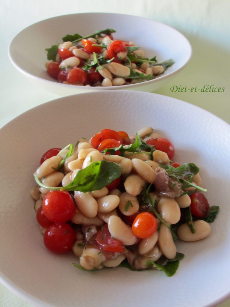 salade, haricots blancs, jambon fumé, salade de haricots blancs, tomates cerises, salade composée