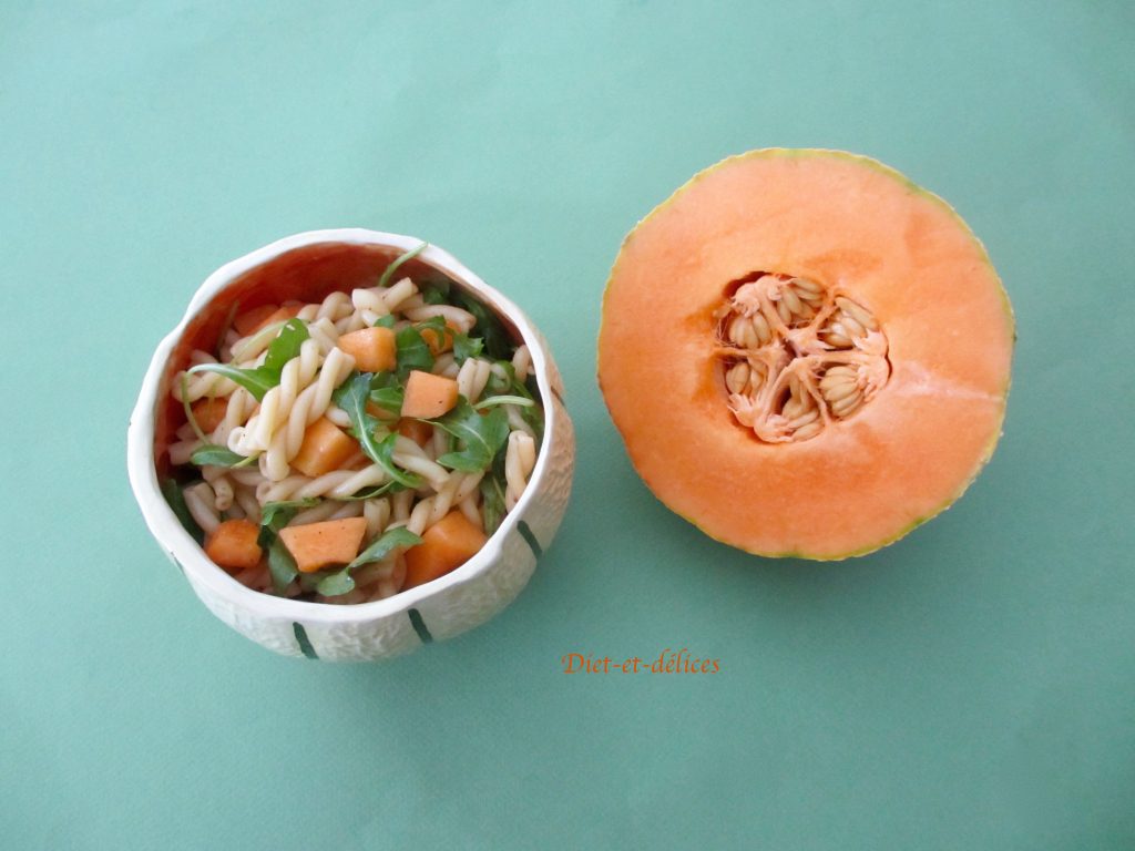 salade, pâtes, melon, salade de pâtes, pâtes au melon, porto, salade de pâtes au melon, roquette, féculents