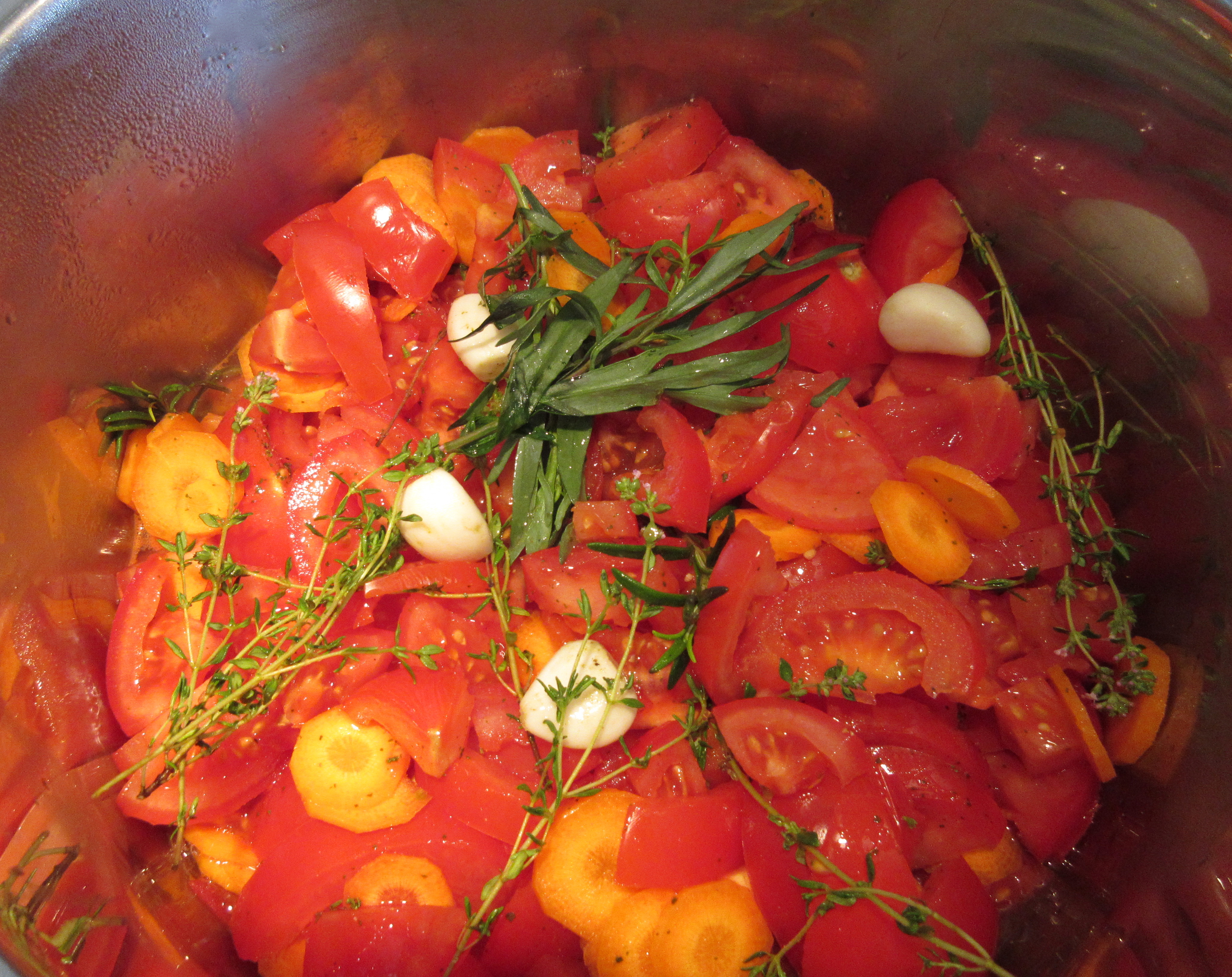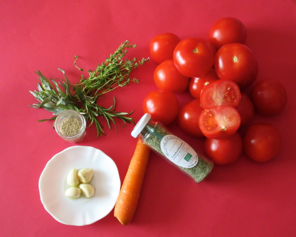sauce, sauce tomate, carotte, sauce aux légumes, sauce tomate aux herbes, herbes fraîches, tomates, estragon, romarin, thym, ail confit, tomates fraîches diététique, cuisine saine, cuisine légère, vegan, végétarien, végétalien