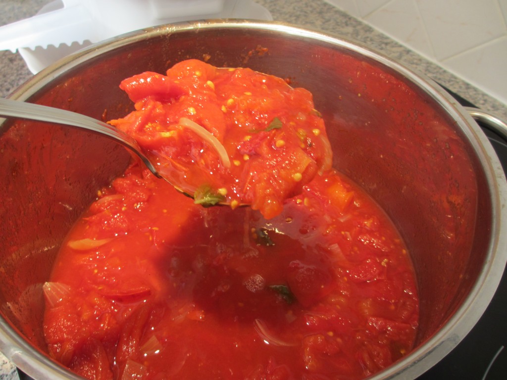 - Lorsque la sauce tomate a bien réduite, la passer au moulin à légumes.