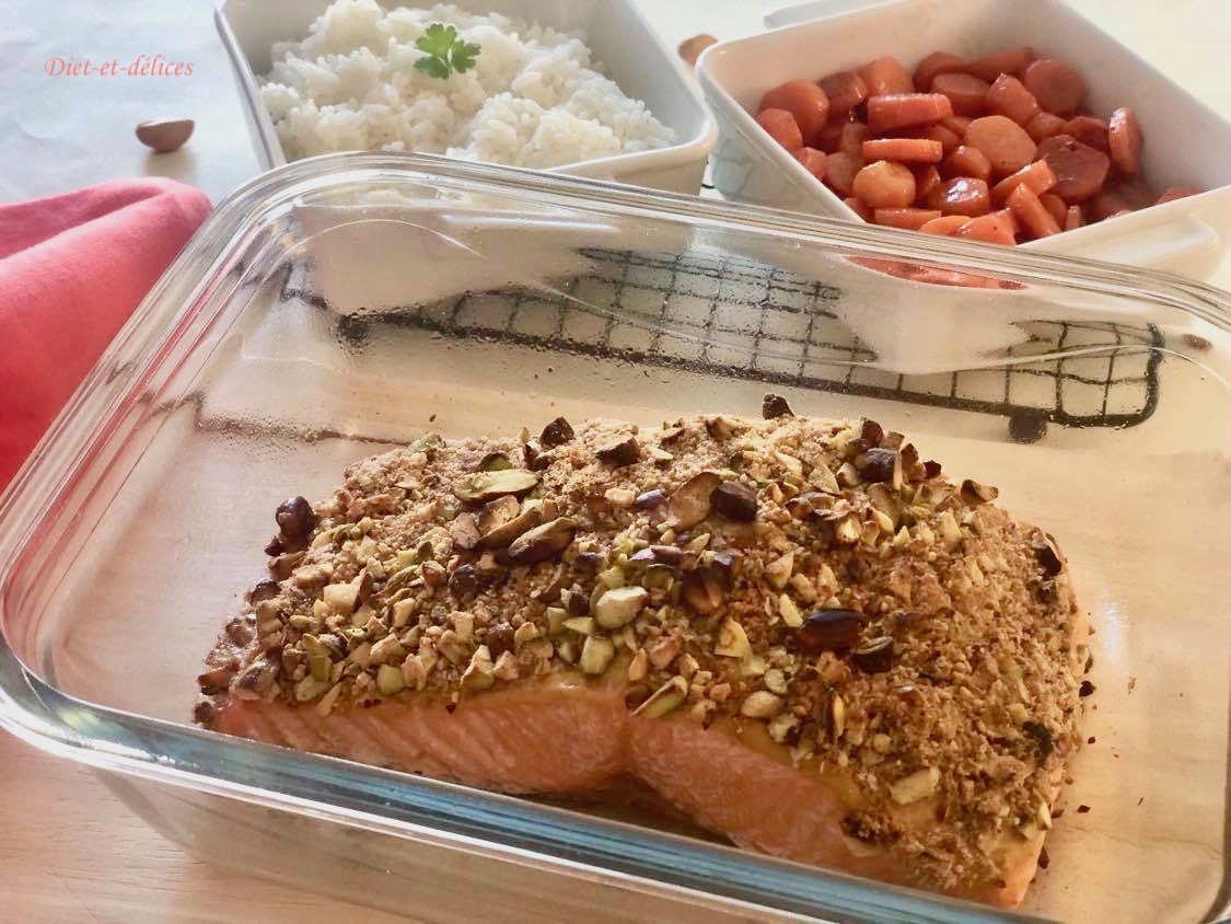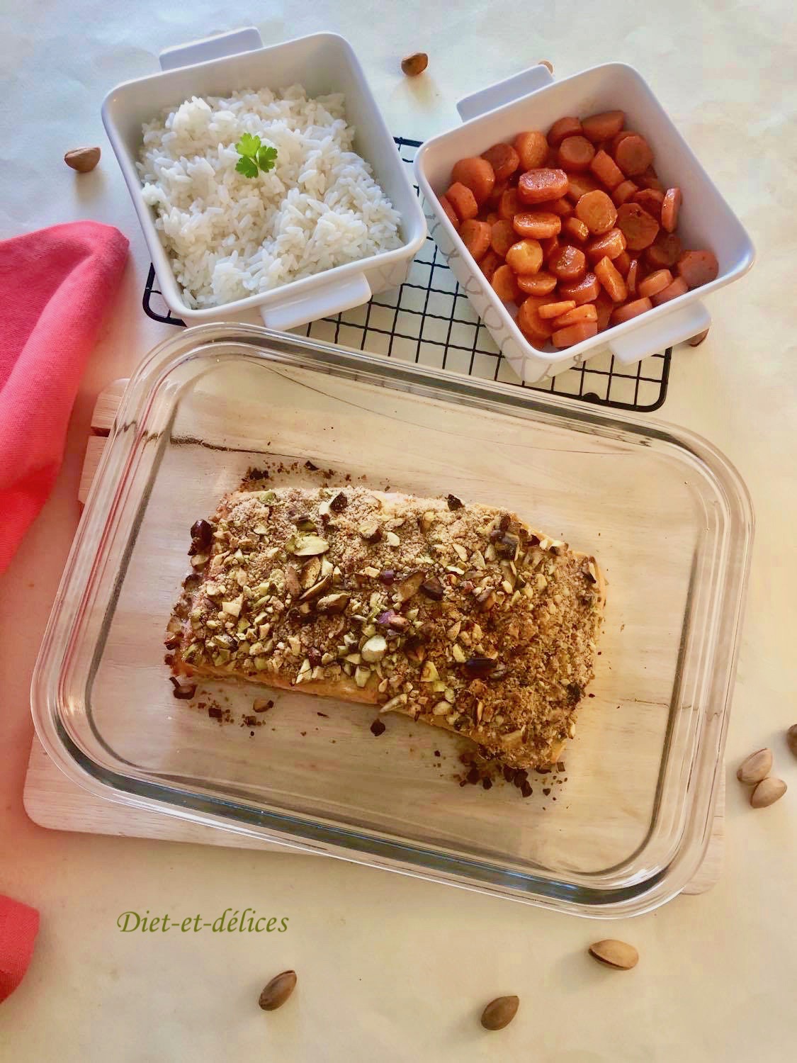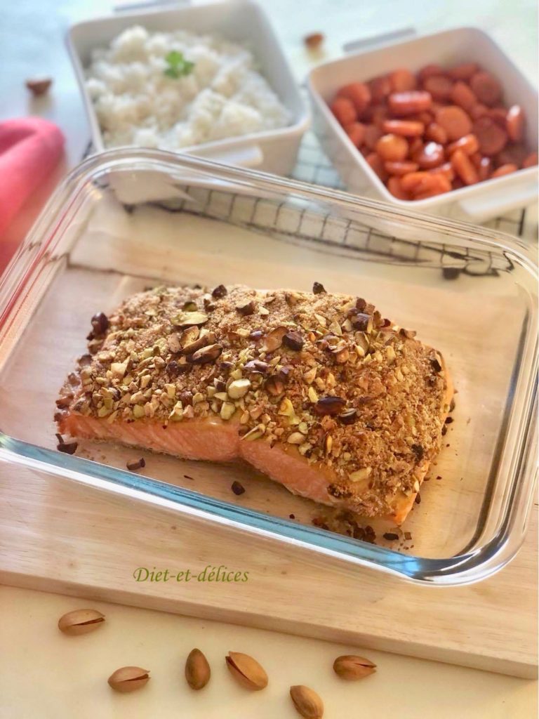 saumon, pavés de saumon, pistaches, ail, poisson , chapelure, moutarde