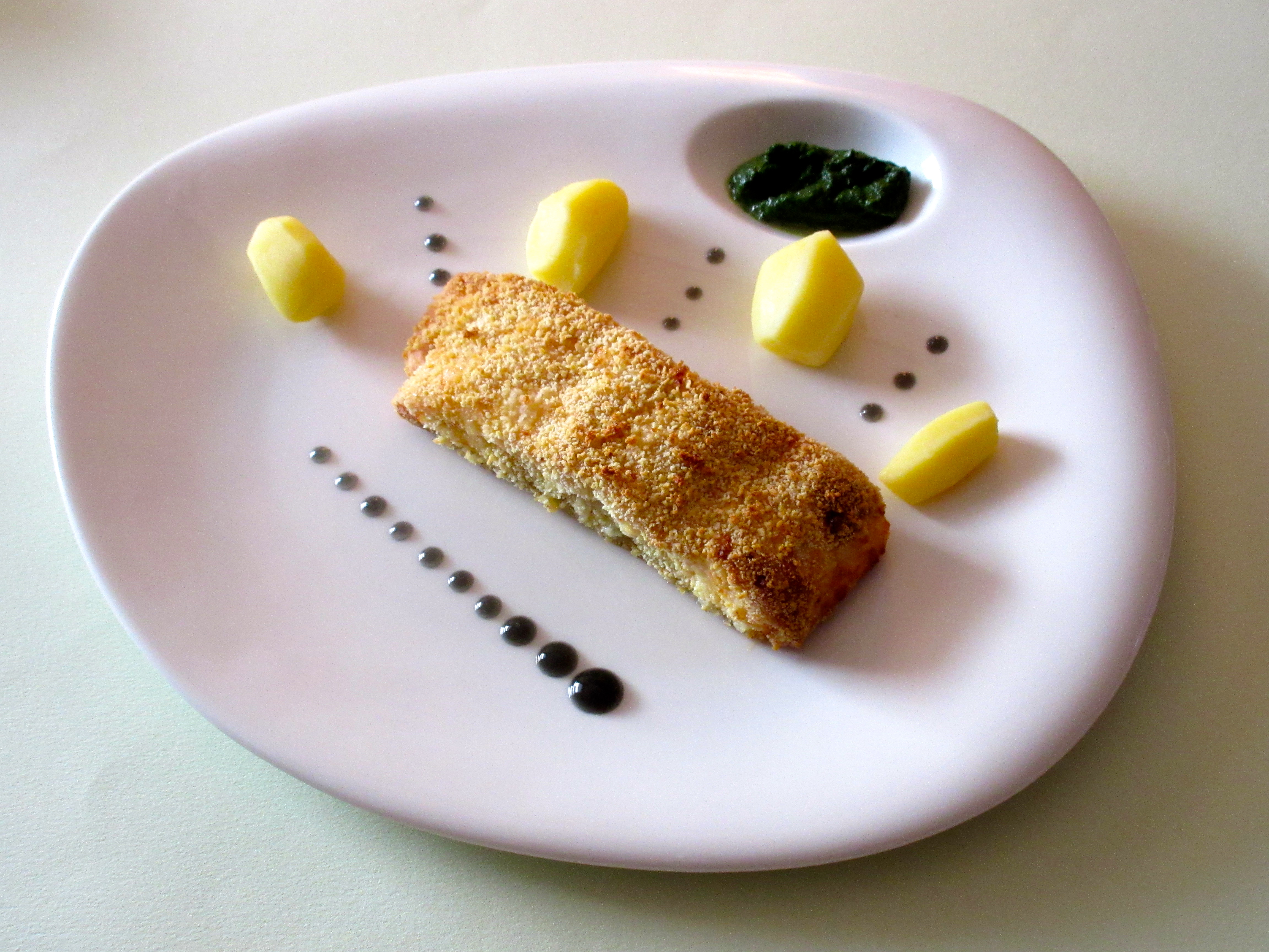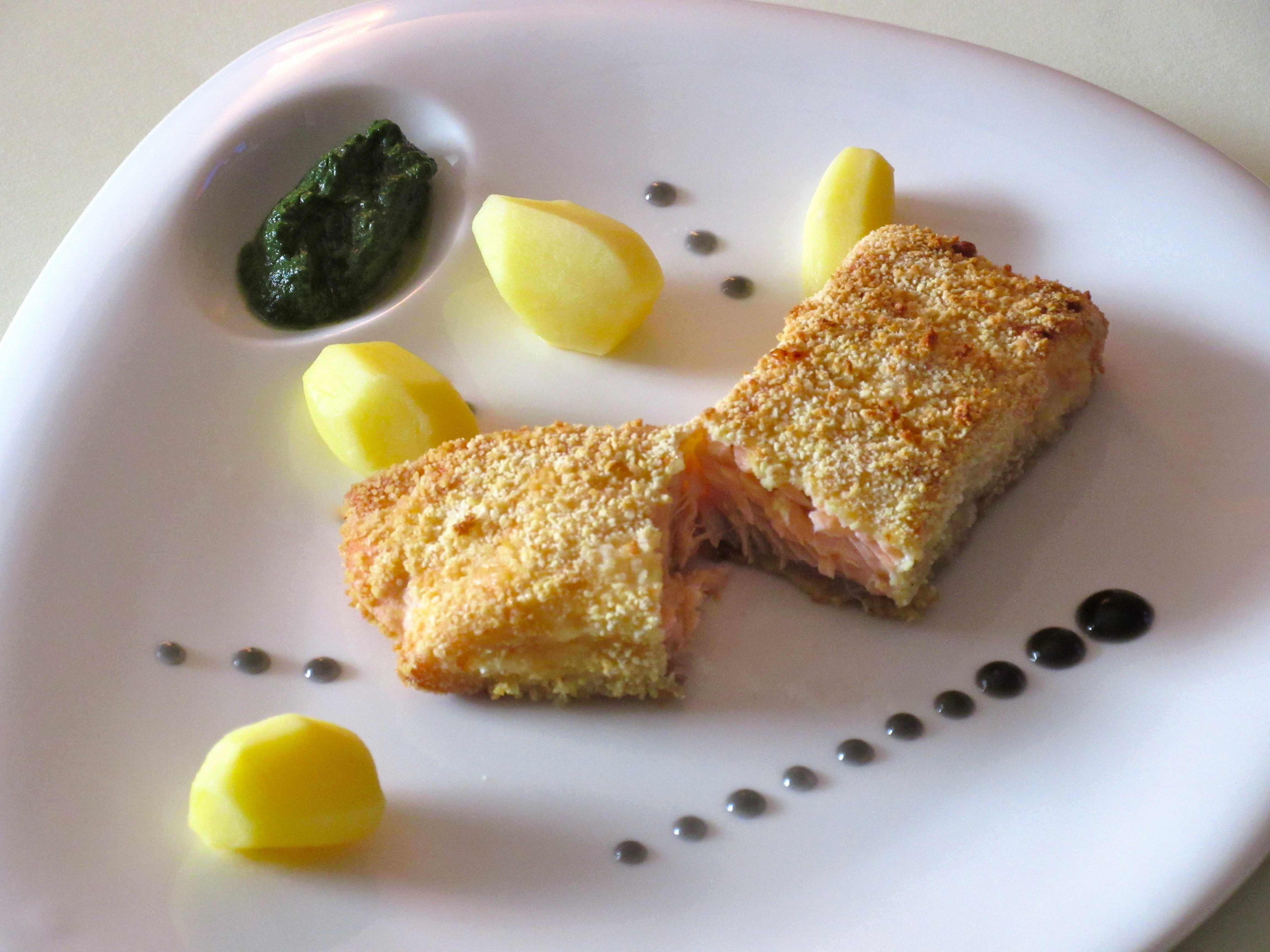 pané du saumon, je n’y aurais pas pensé. Une belle assiette raffinée et gourmande. Belle journée