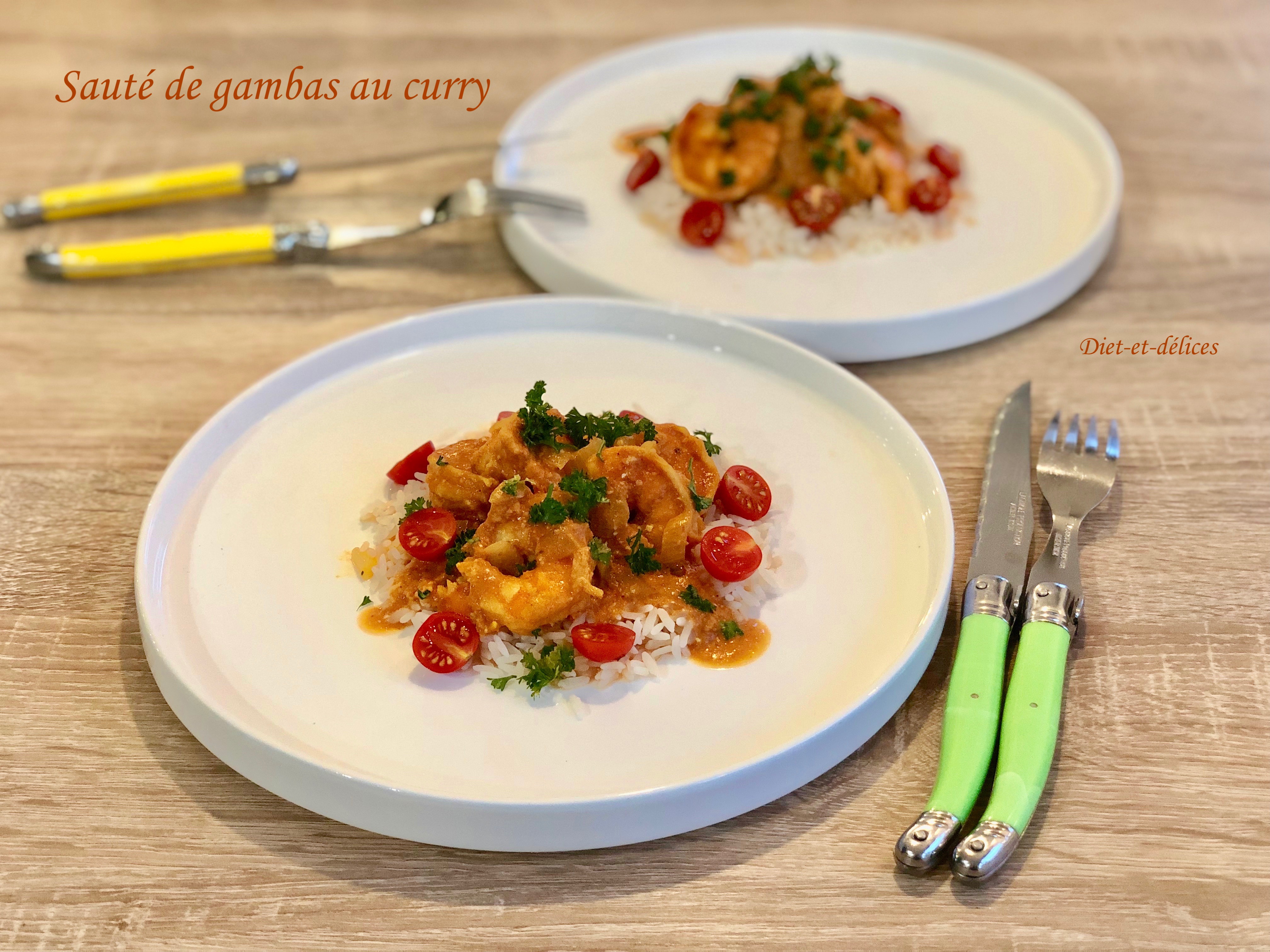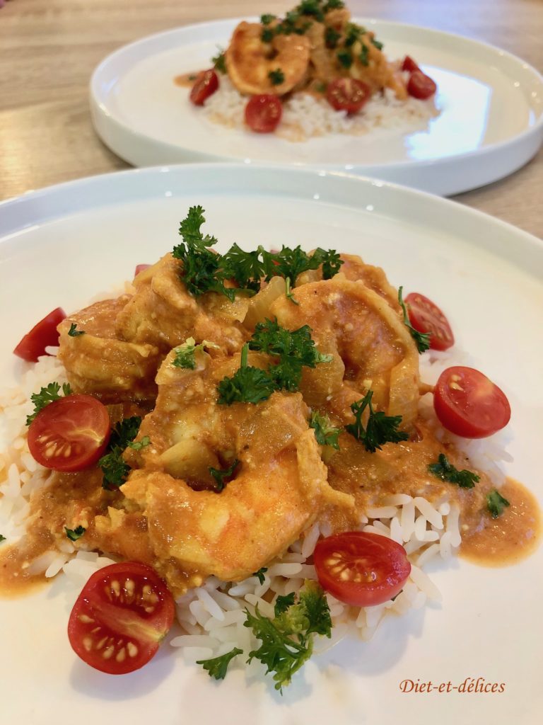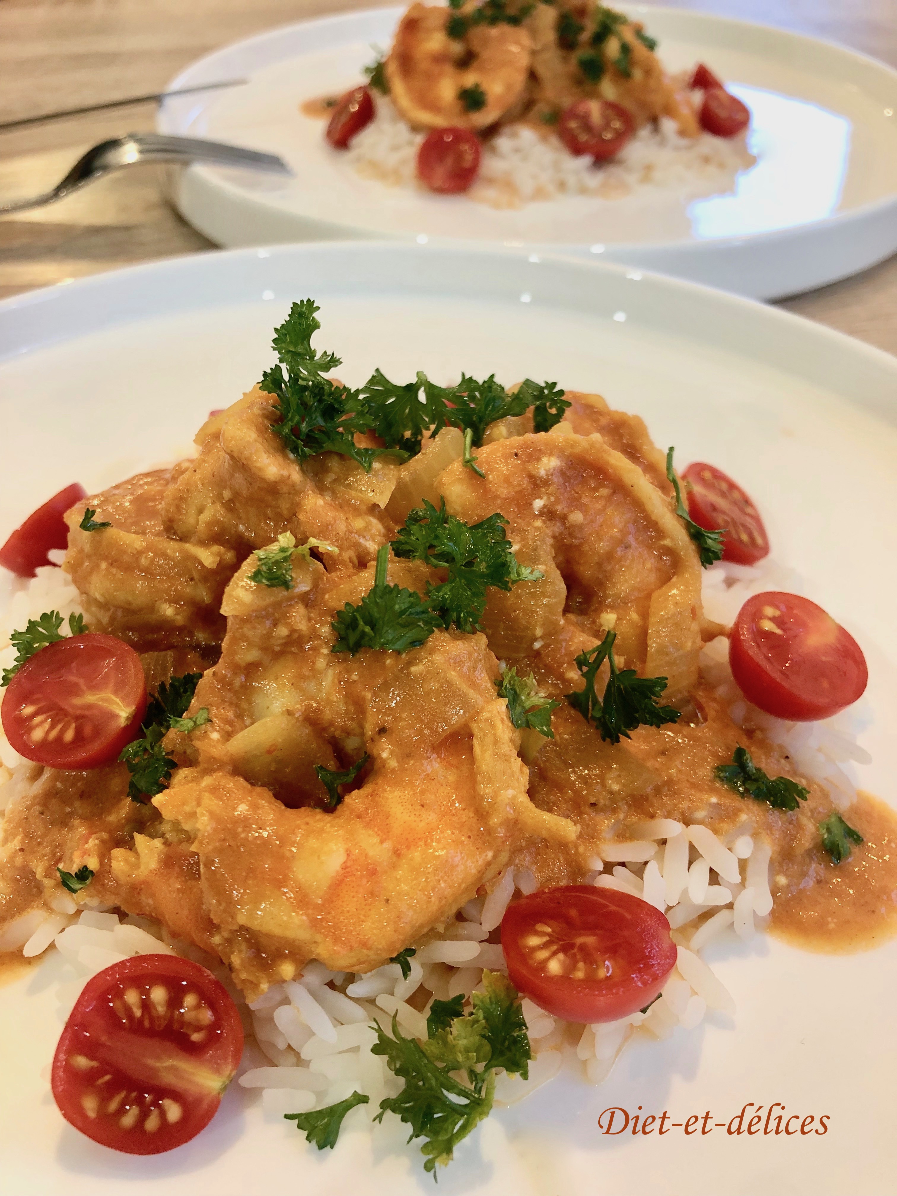 gambas, curry, coulis de tomate, sauté de gambas, gingembre, cumin