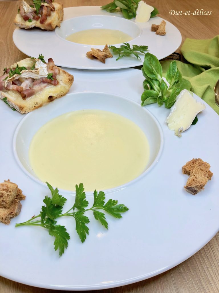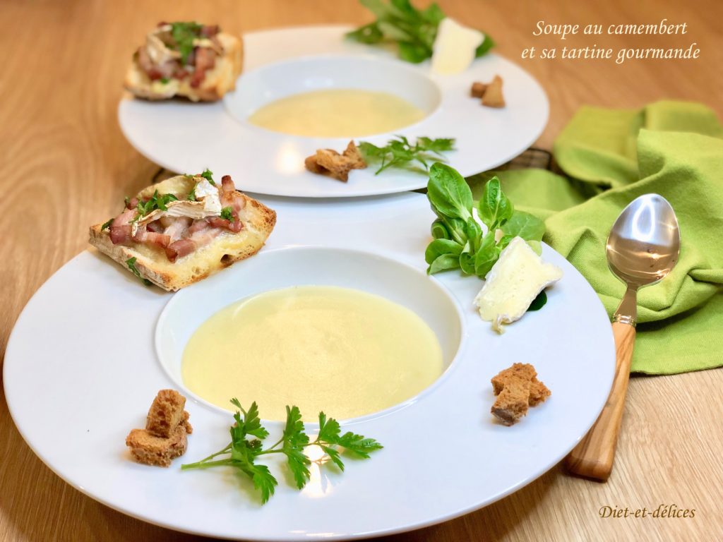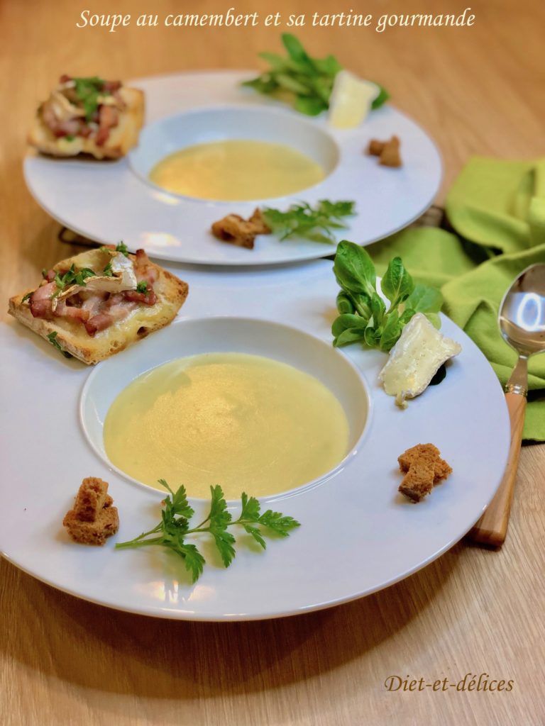 Pour les soirées d’hiver ou pour les soirées fraîches, cette soupe au camembert et son petit accompagnement sont parfaits pour un dîner gourmand. Le visuel donne envie de déguster.
