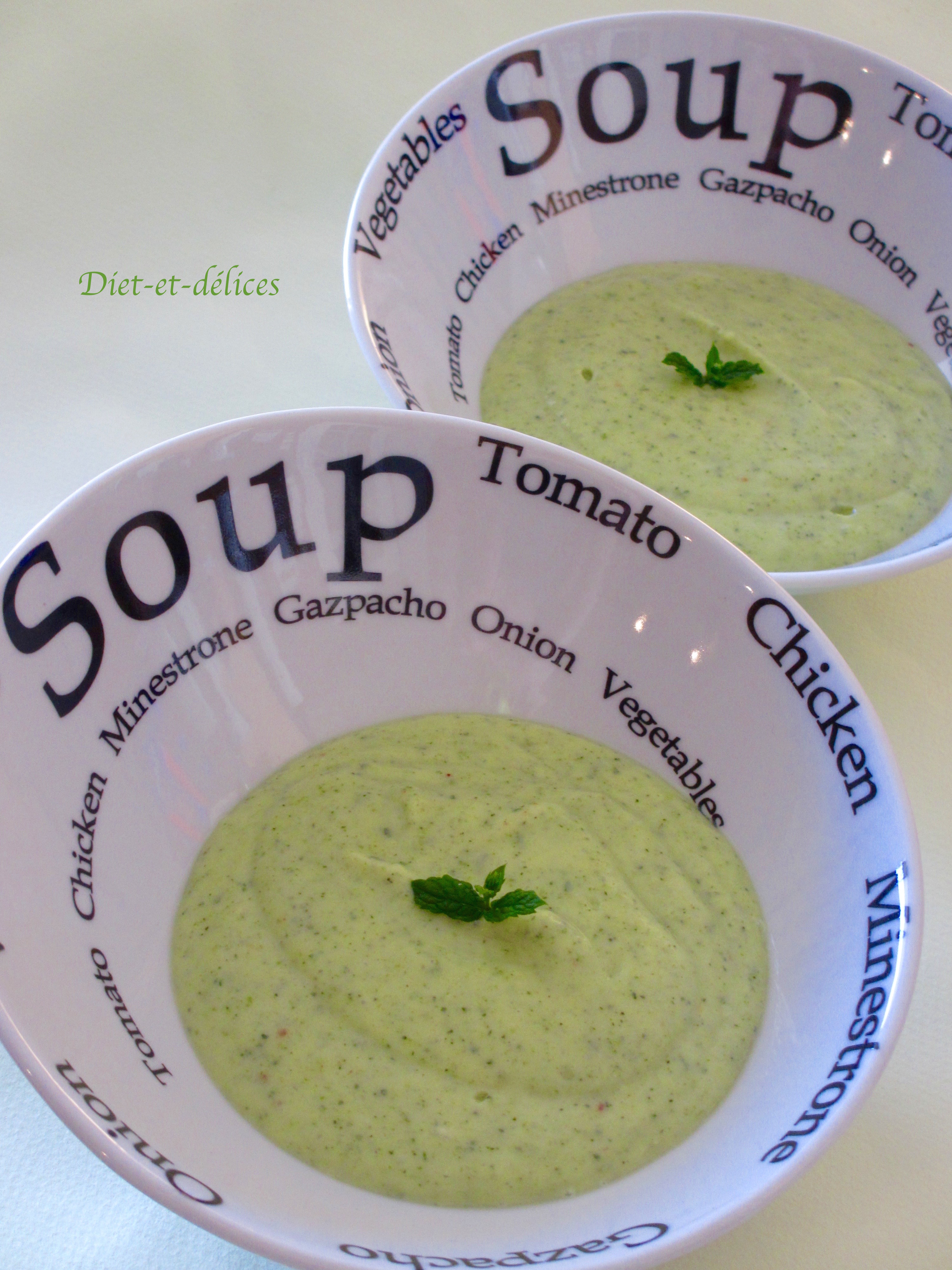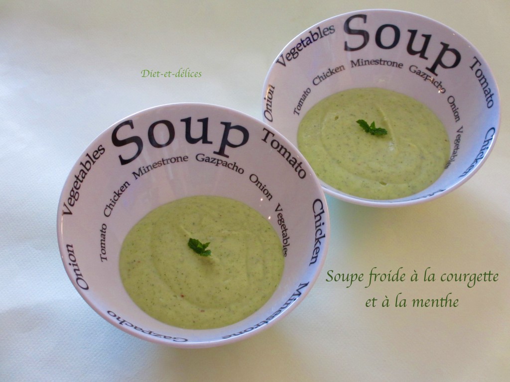végétariensoupecourgettesmenthesoupe froidepiment d’espelette,  cuisine d’étésoupe froide à la courgettefromage blanc,  diététiquecuisine allégéerecette légère
