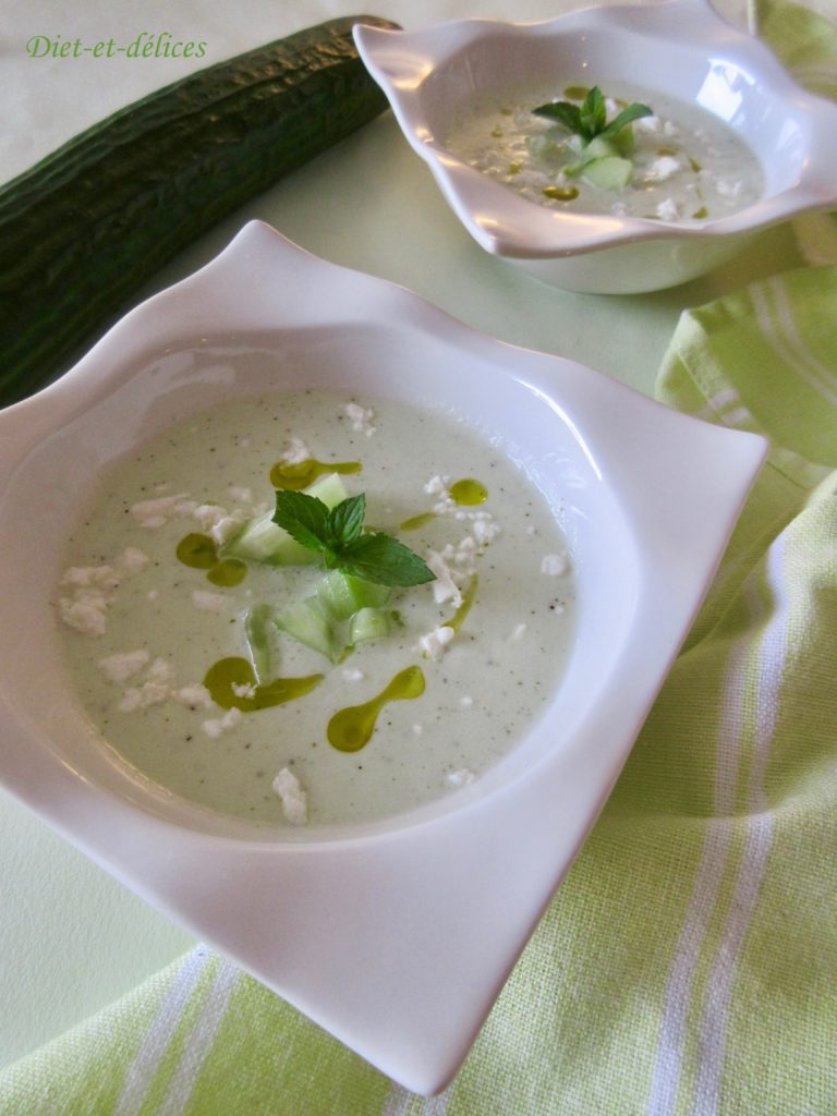 soupe froide, soupe, soupe glacéeconcombre, feta, yaourt grecmenthe