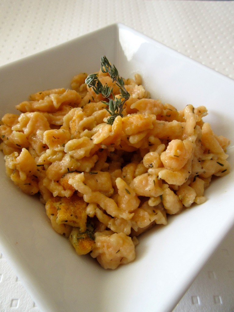 Oh que j’aime les spatzles ! Cette version à la tomate a tout pour me plaire !