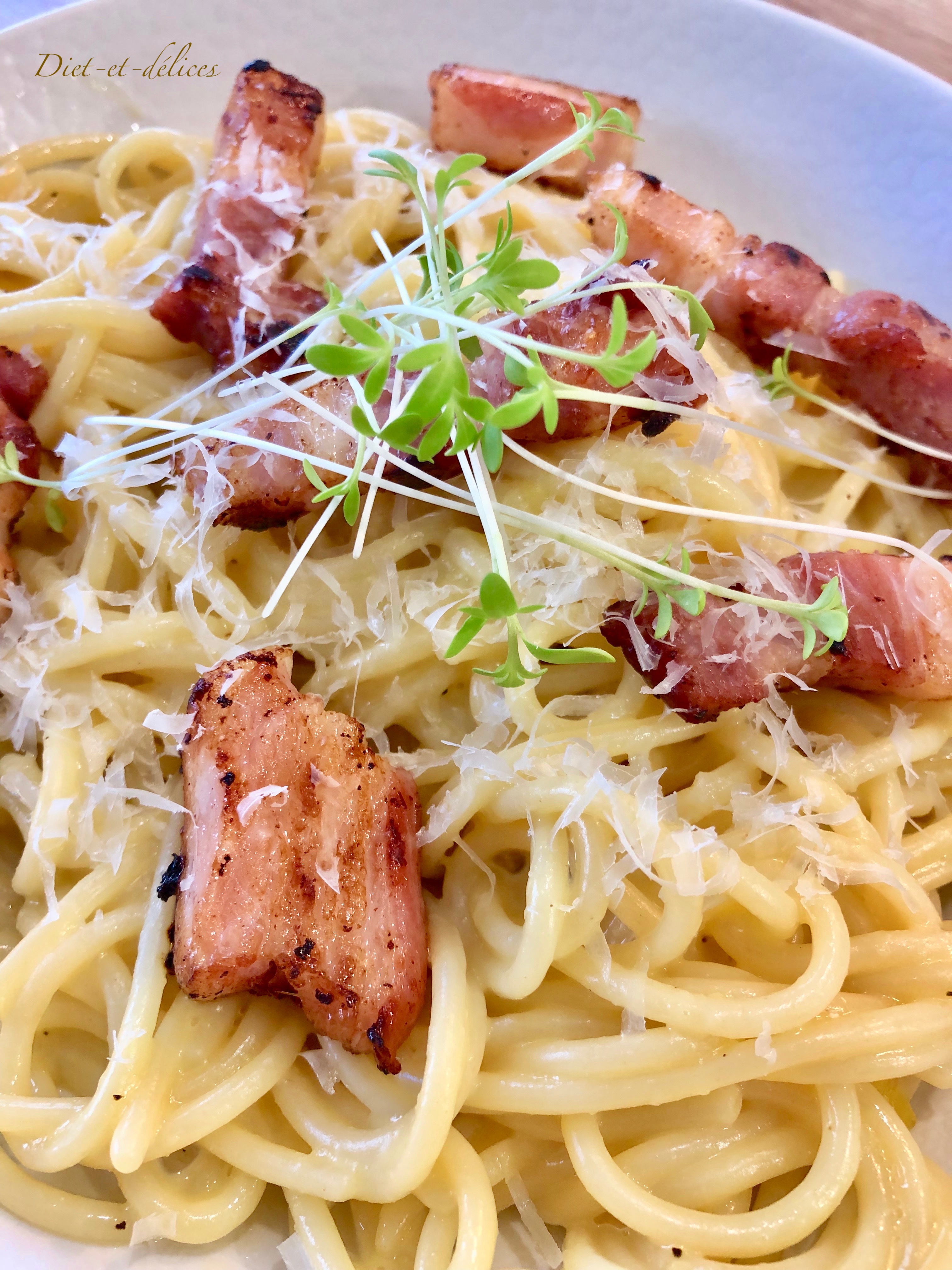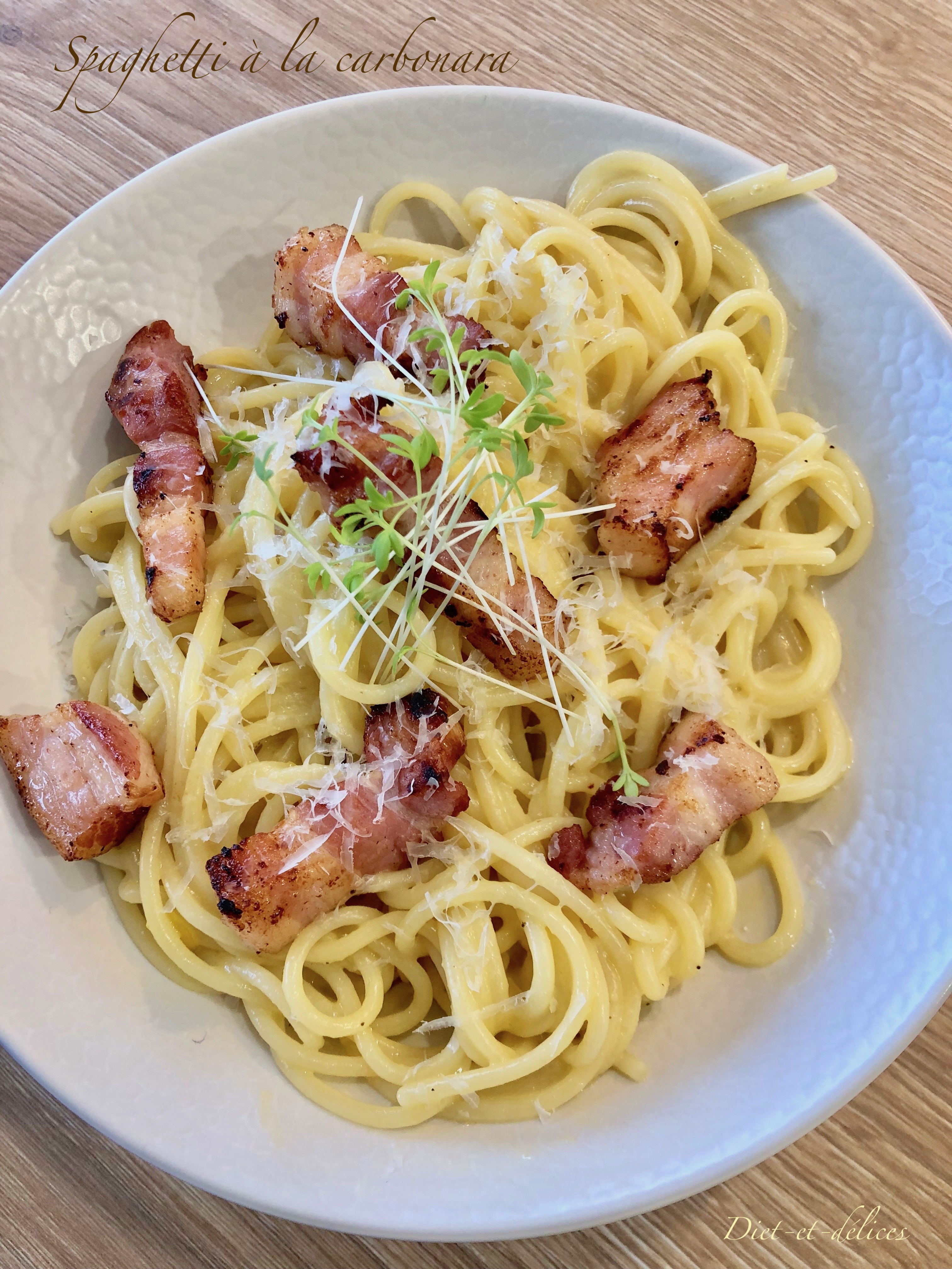 – Traditionnellement, les spaghetti à la carbonara se prépare avec du guanciale : c’est le lard qui se trouve dans la joue du porc et que l’on peut acheter notamment dans les épiceries italiennes.
